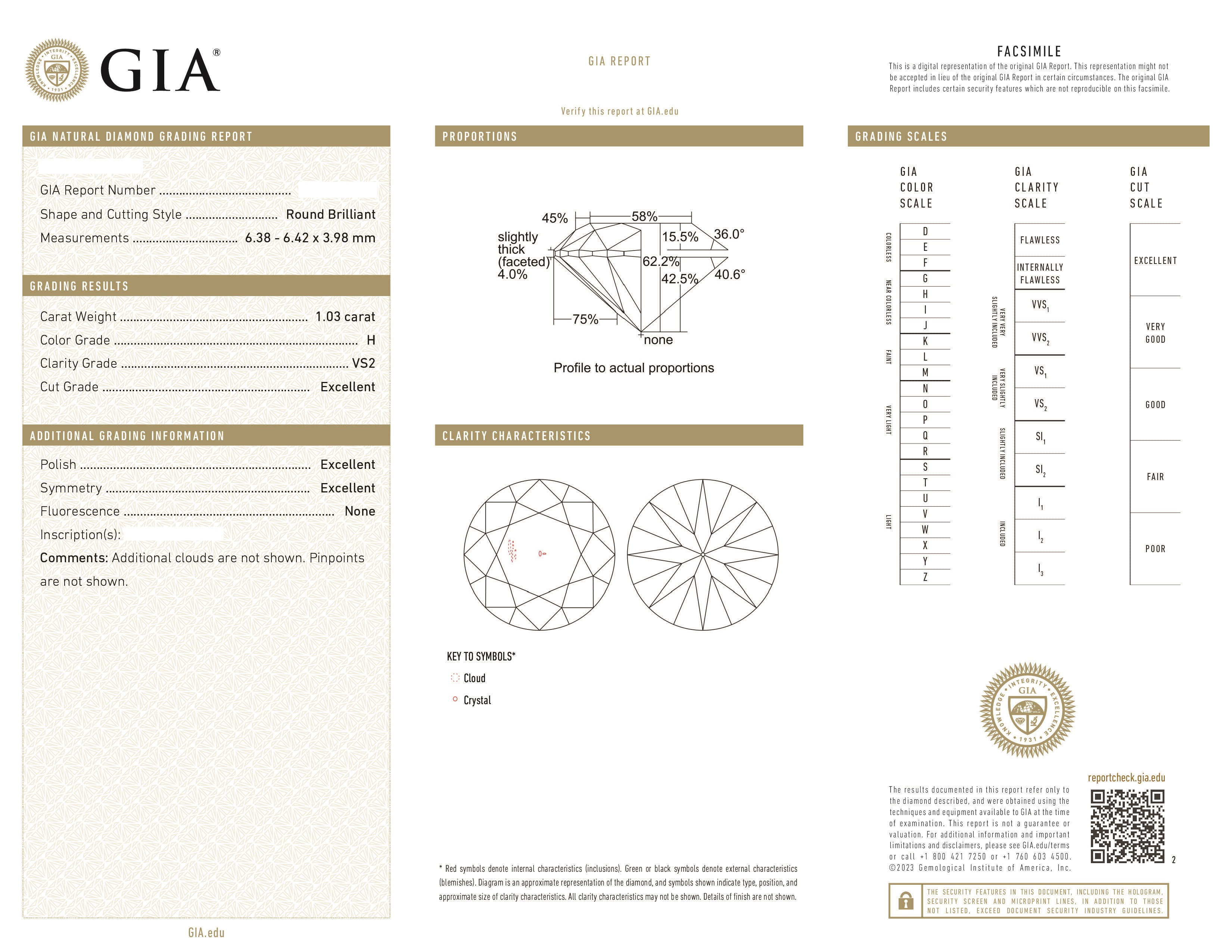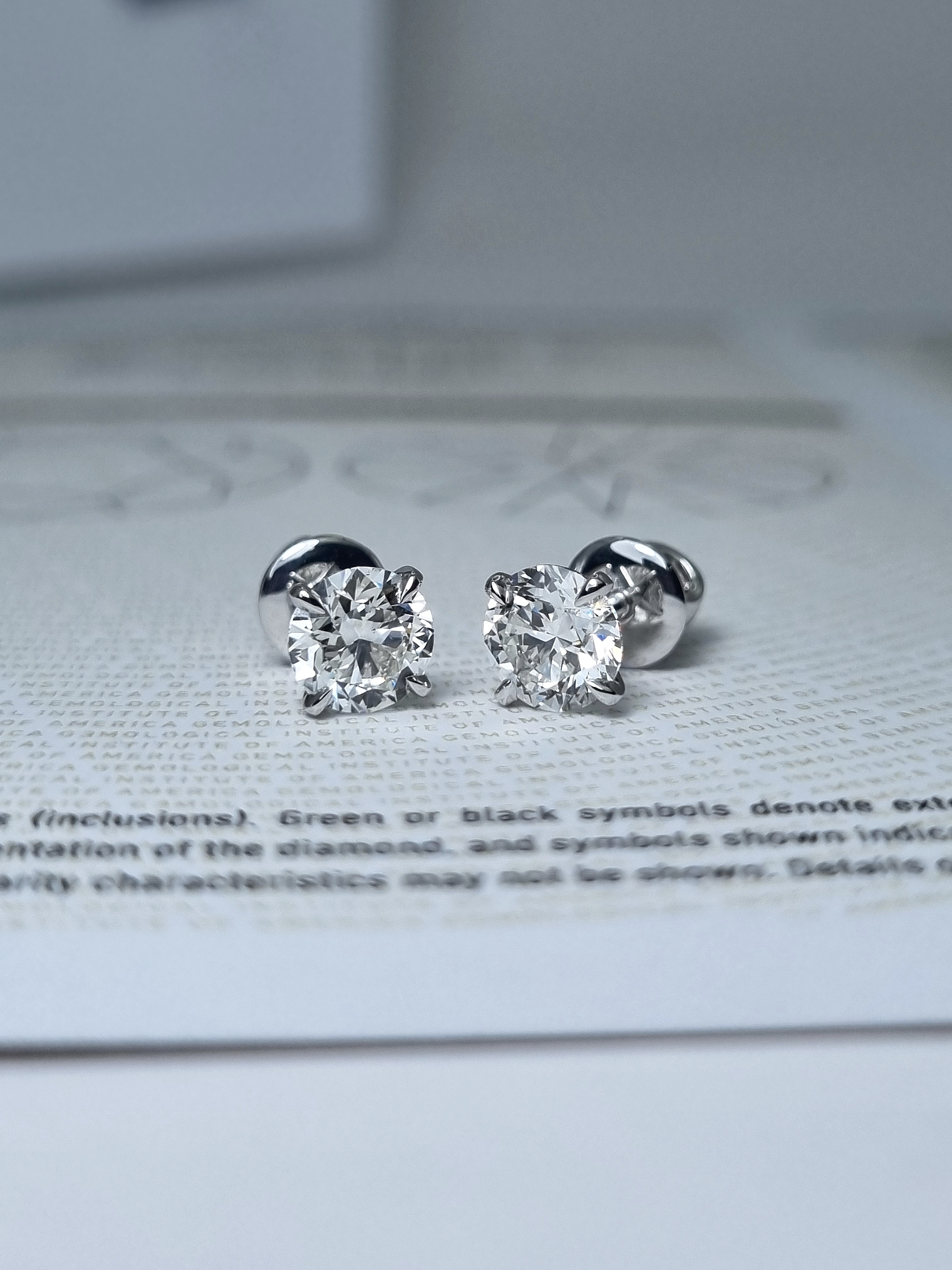 GIA Серьги 1,03/1,03 Ct. H/vs2 (3 Excellent)