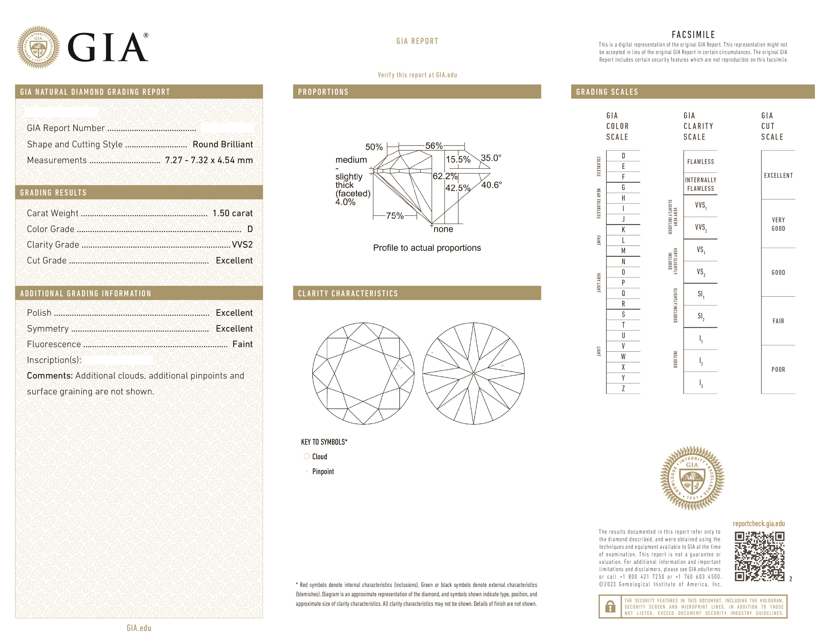 Вставка 1 бриллиант 1,50 ct. D/VVS2 (3 excellent); 1 бриллиант 1,57 ct. D/VVS2 (3 excellent)