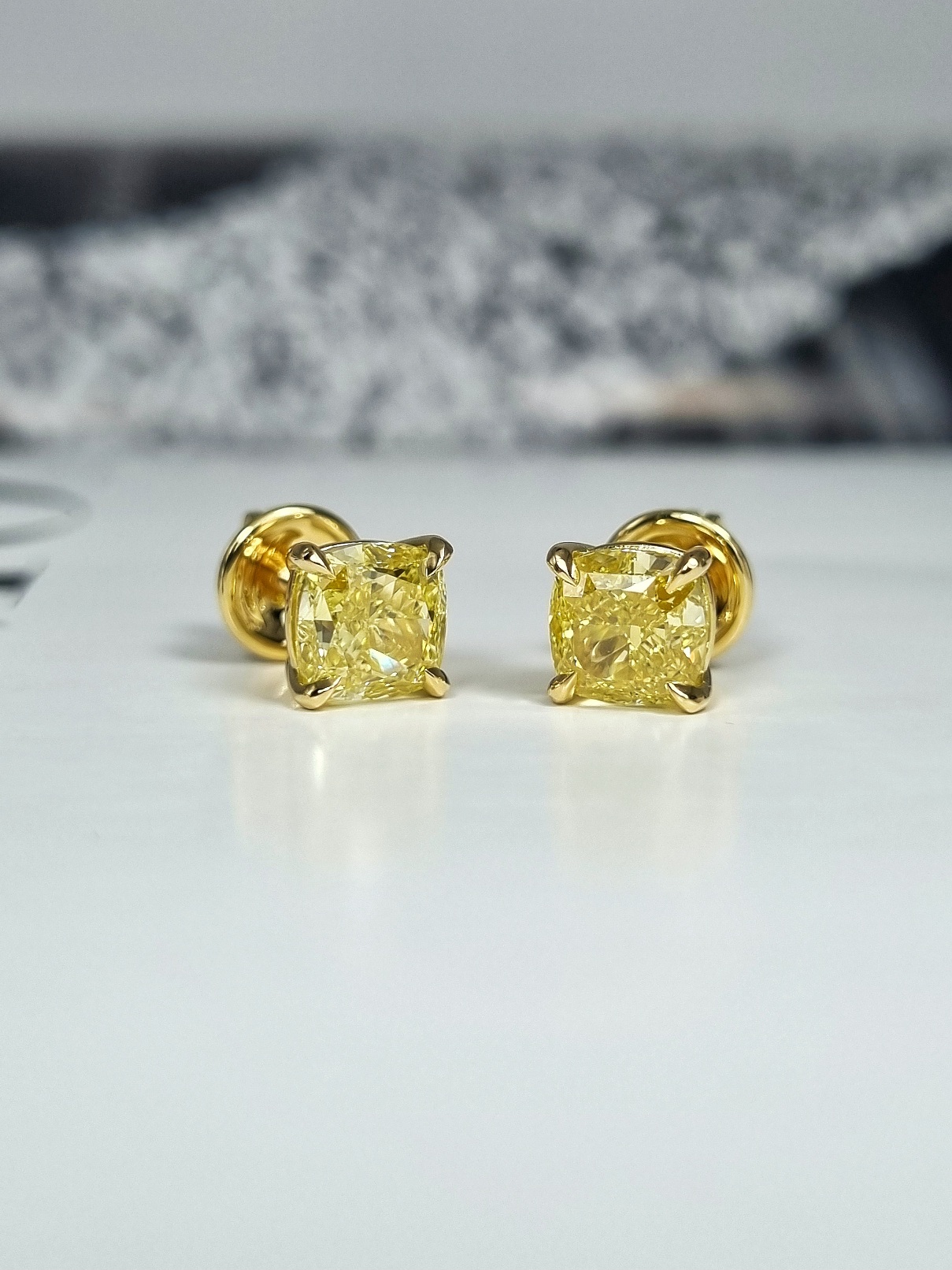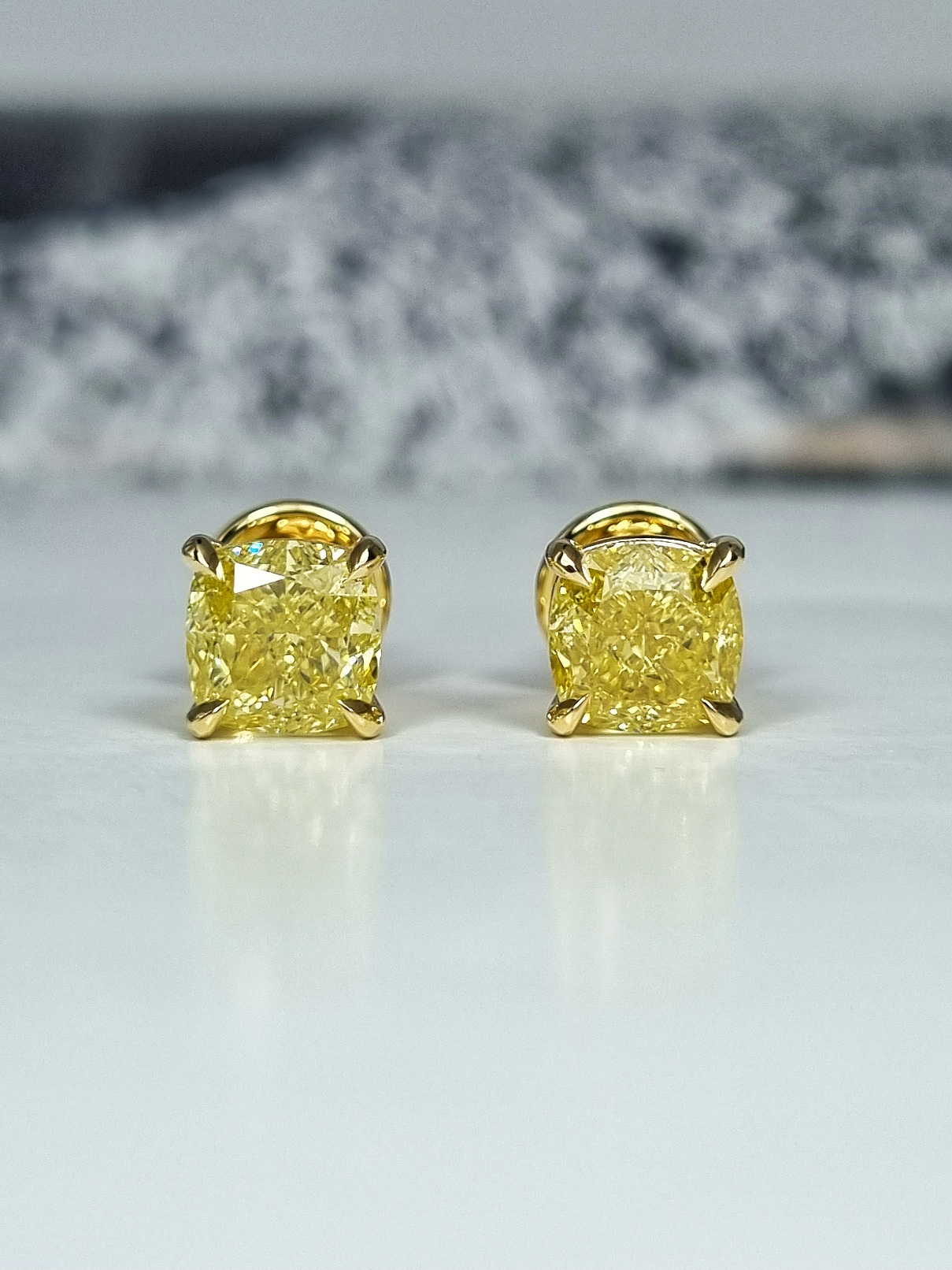 GIA Серьги 2,00/2,01 Ct. Fancy Intense Yellow/vs2 (cushion Diamonds)