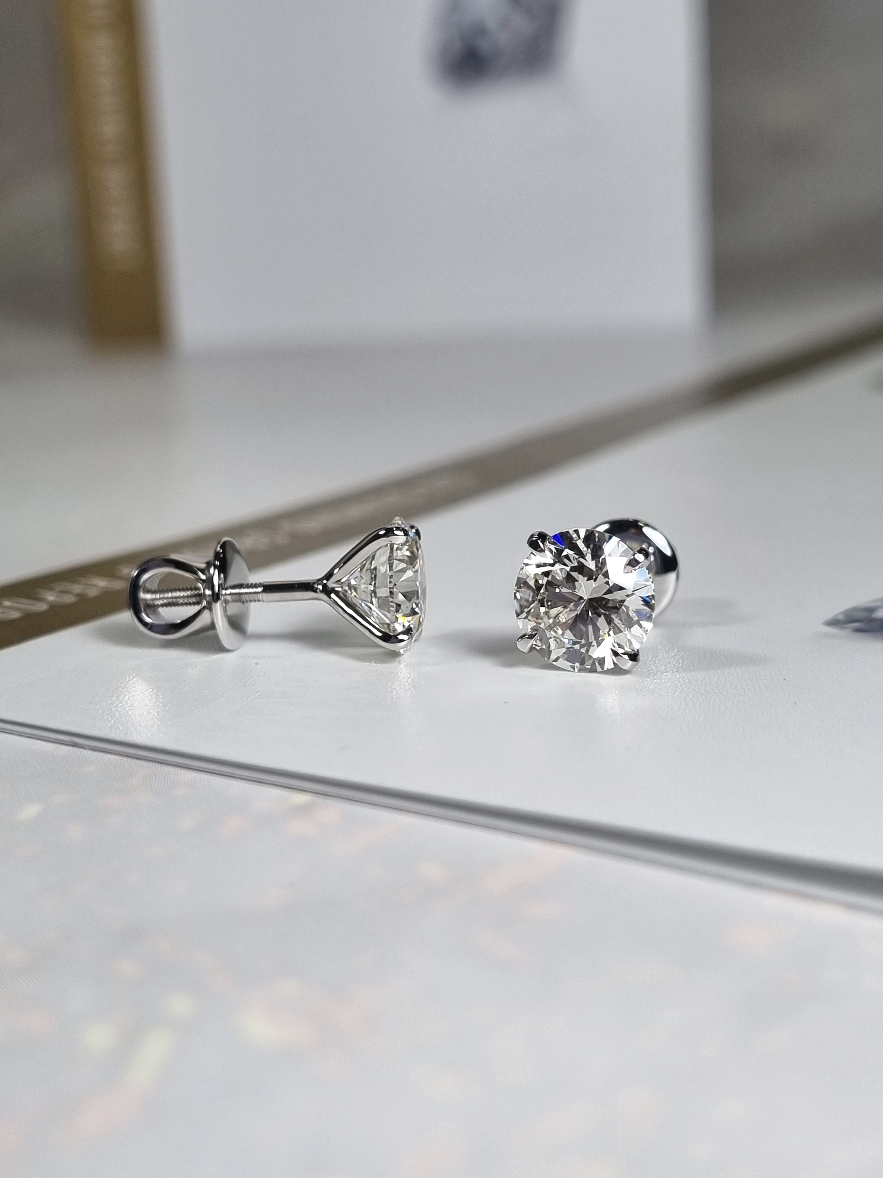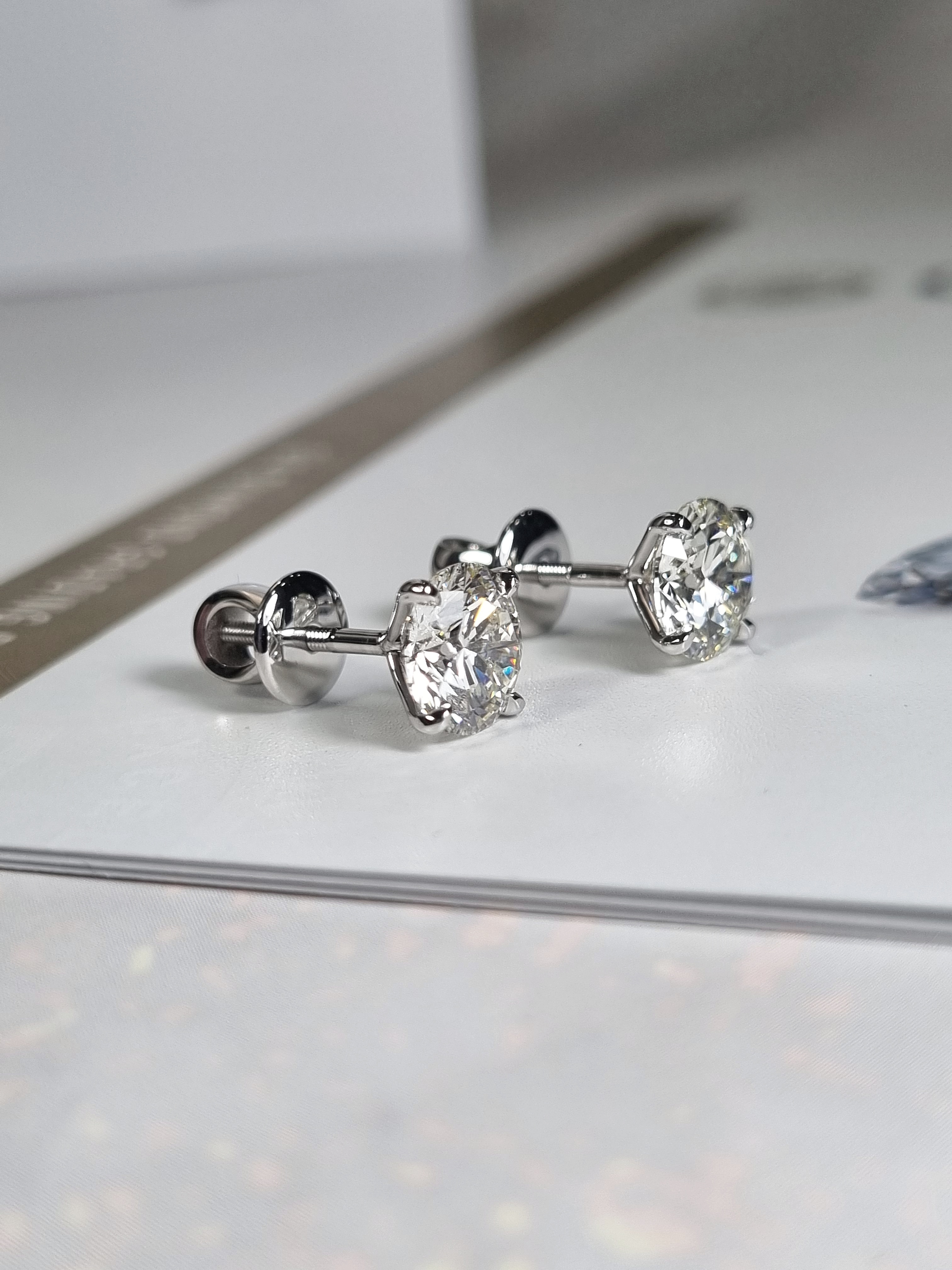 Серьги изготовлены из белого золота 750 пробы, что обеспечивает их долговечность и устойчивость к коррозии. Вставка из двух бриллиантов общей массой 4,05 карата, каждый из которых обладает превосходными характеристиками J/Si1 (3 excellent), делает эти серьги поистине уникальными и ценным приобретением. Каждый бриллиант прошел строгую сертификацию GIA, что подтверждает их подлинность и качество.