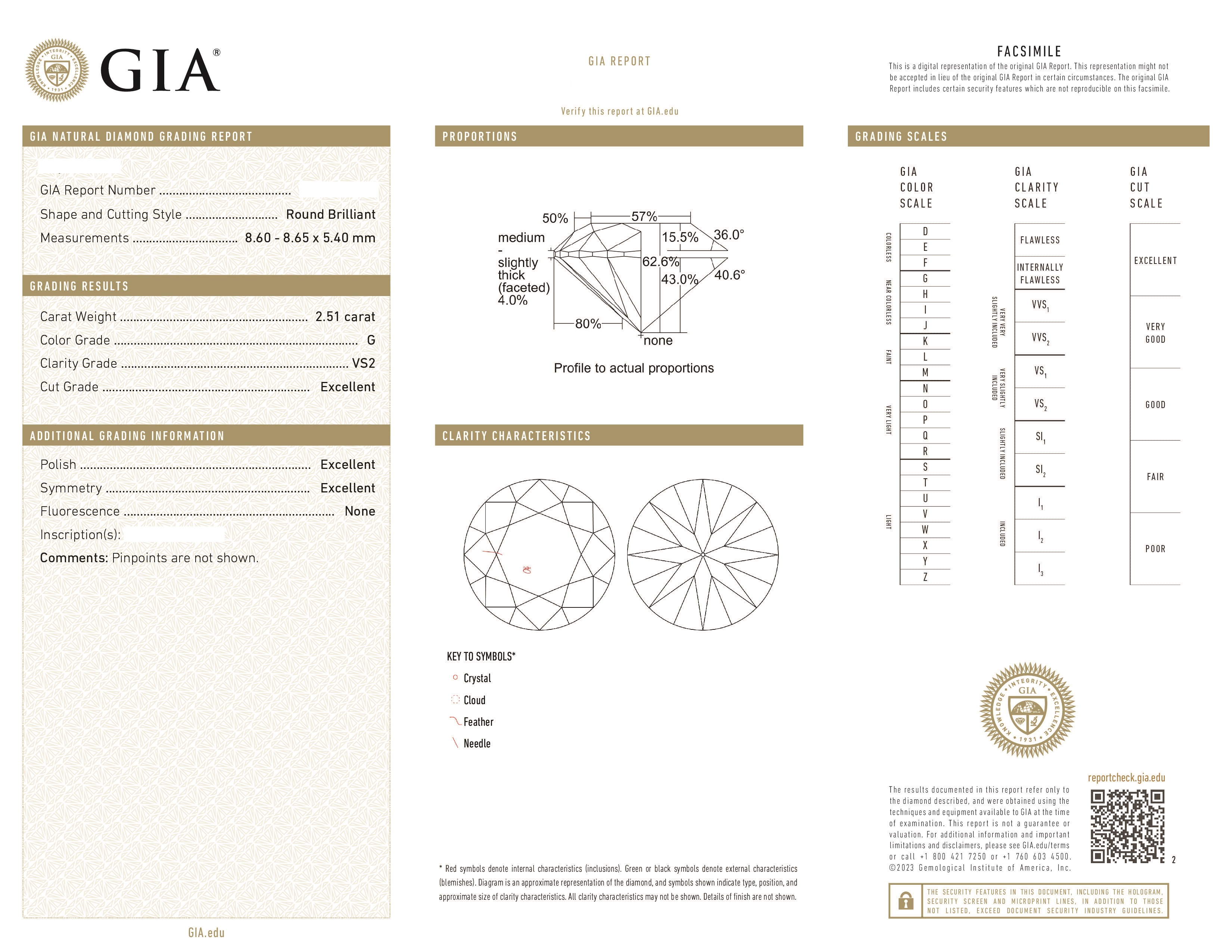 Вставка 1 бриллиант 2,50 ct. G/VS2 (3 excellent); 1 бриллиант 2,51 ct. G/VS2 (3 excellent)