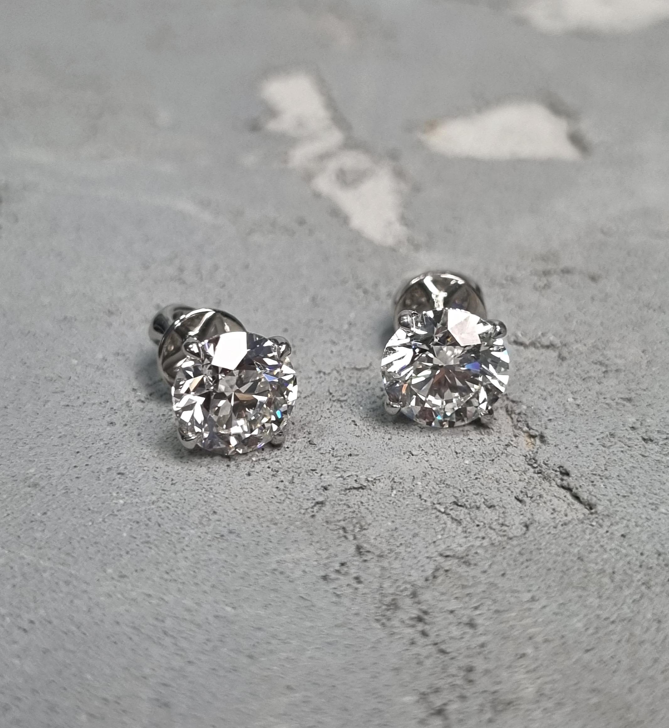 Особое внимание стоит уделить вставкам – двум бриллиантам общей массой 3,00 и 3,01 карата, имеющим характеристики G/VS1. Эти камни обладают высоким блеском и прозрачностью, что делает их особенно привлекательными. Каждый бриллиант прошел строгую сертификацию в Gemological Institute of America (GIA), что подтверждает их подлинность и качество.