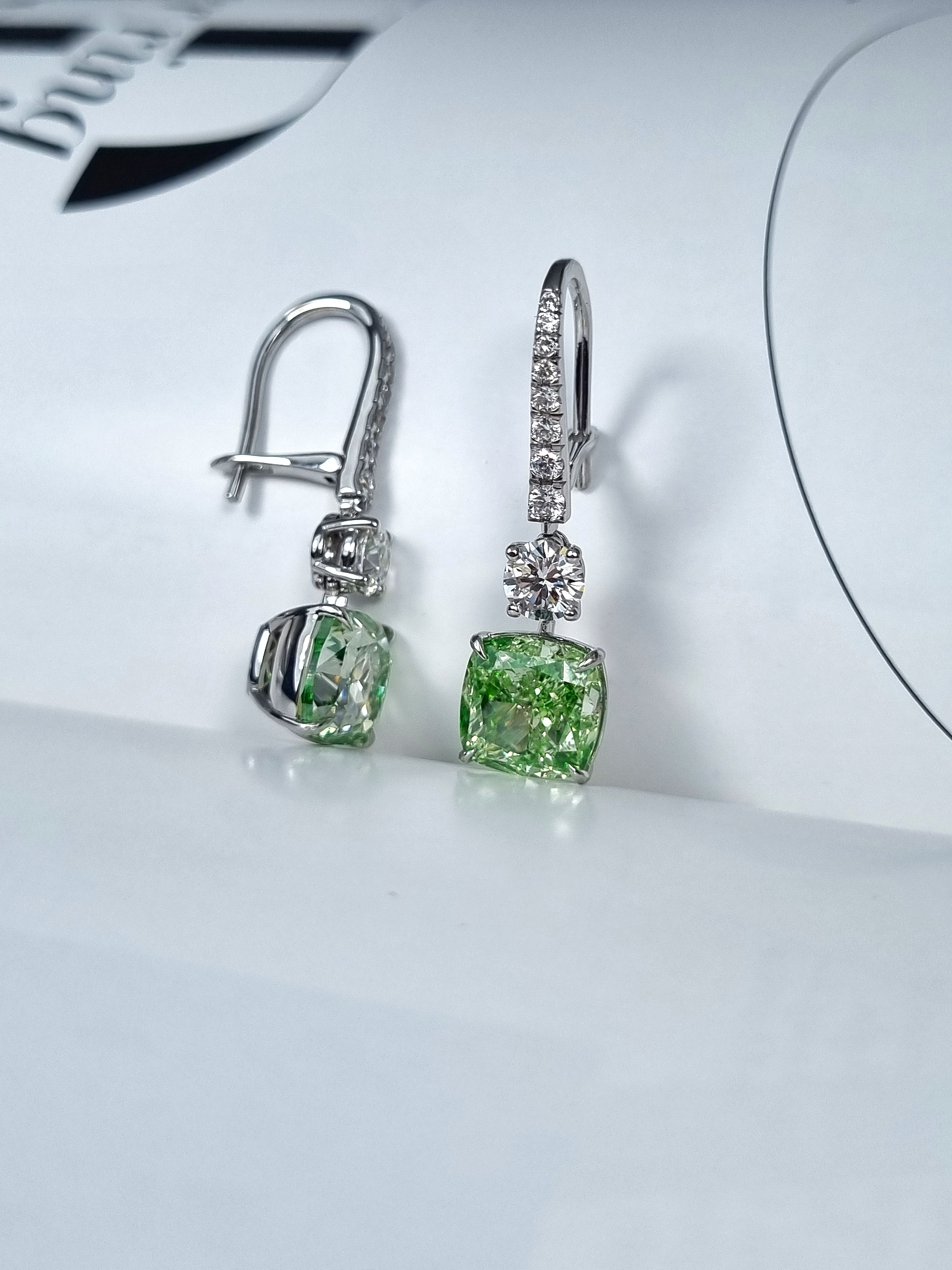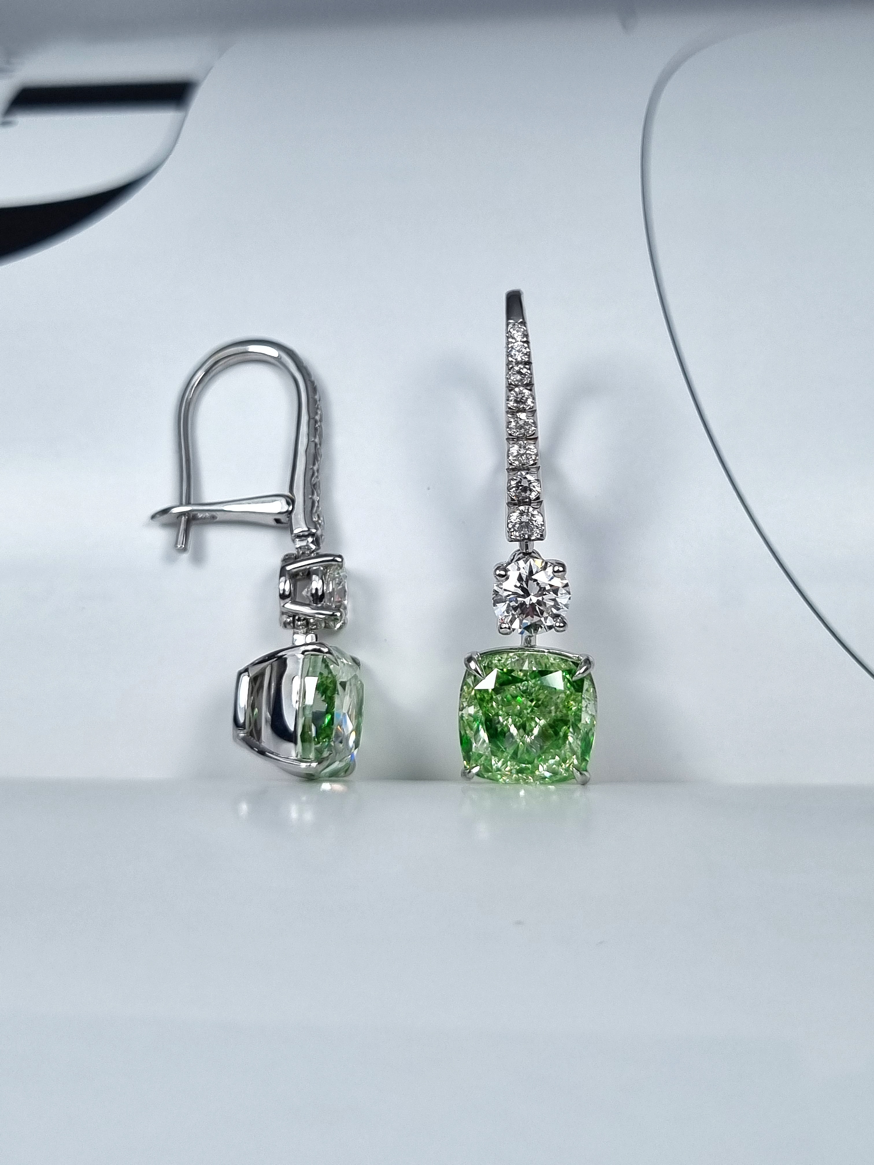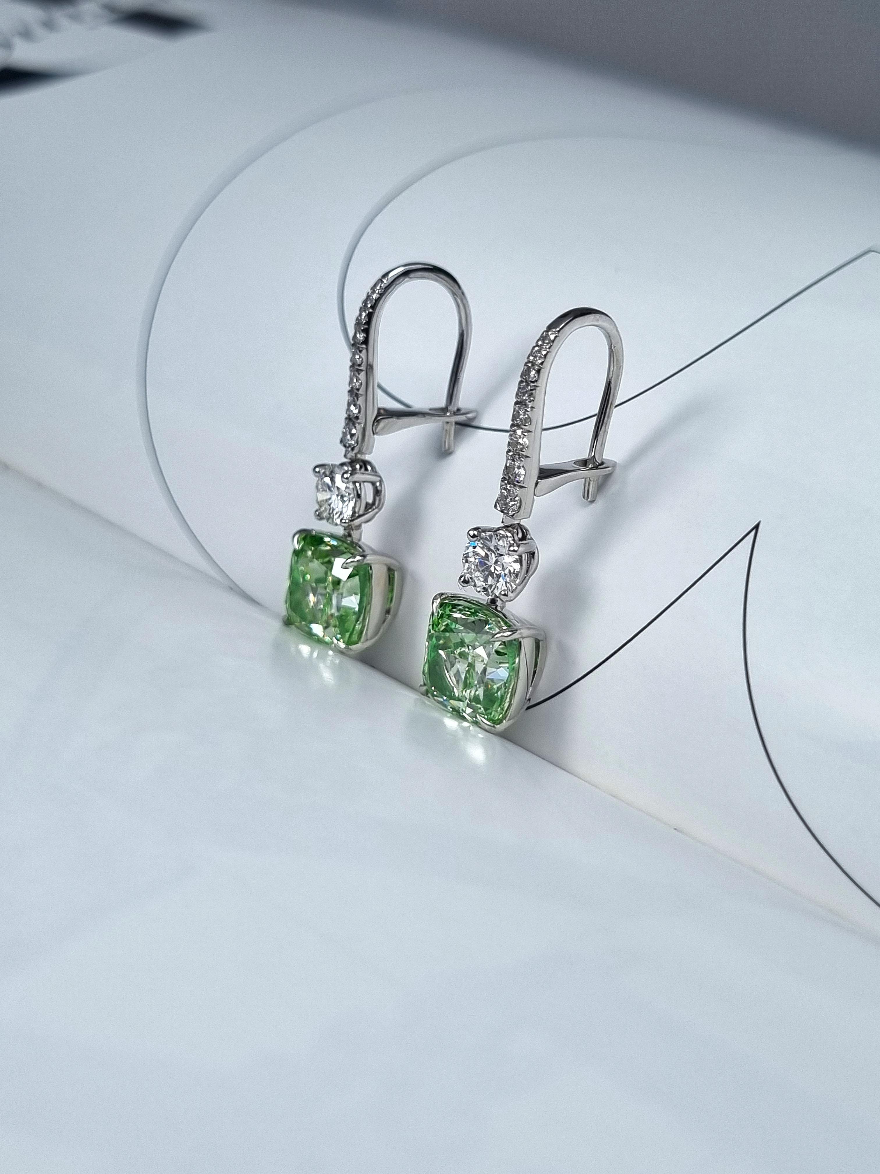 NO NAME Серьги 3,01/3,02 Ct. Light Greenish Yellow/vvs2-si1