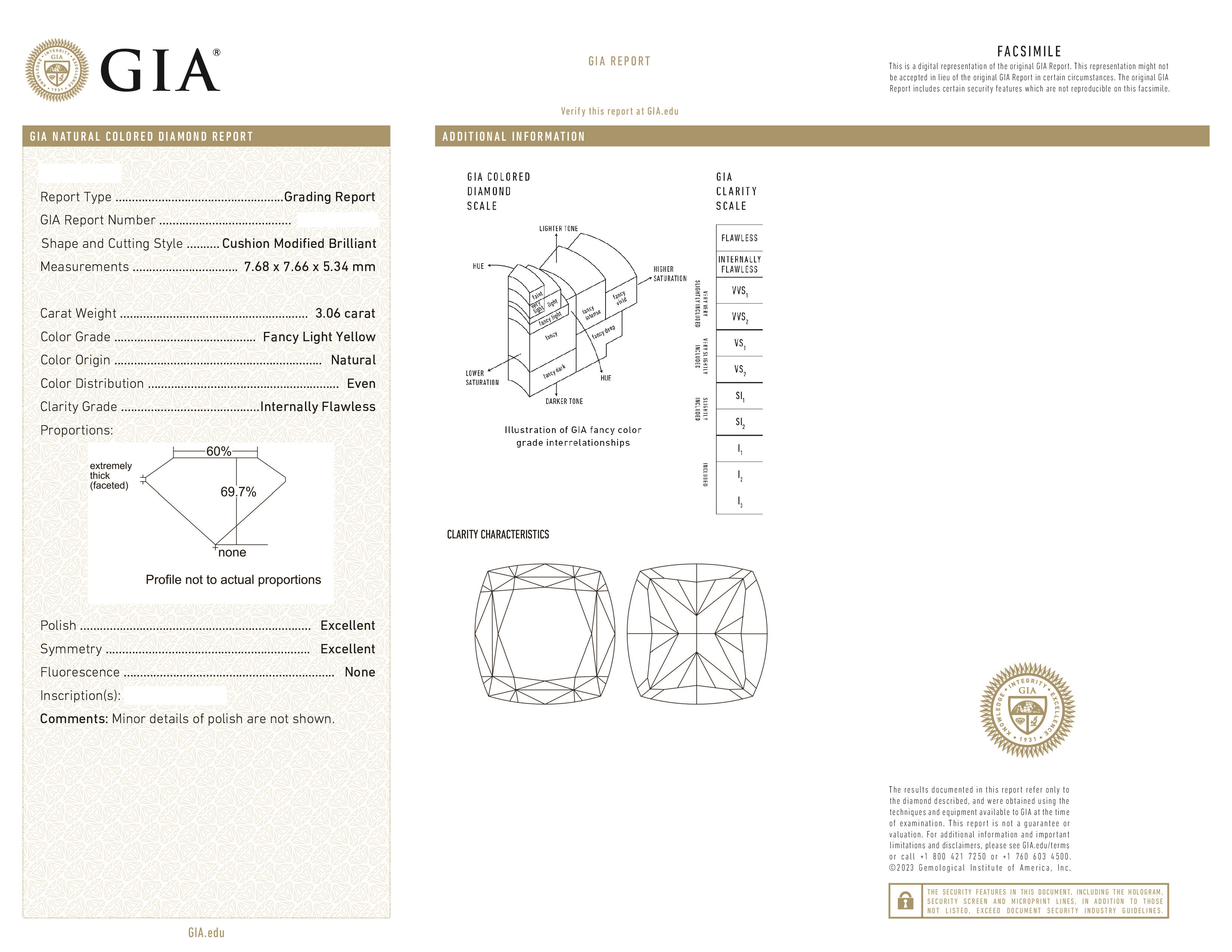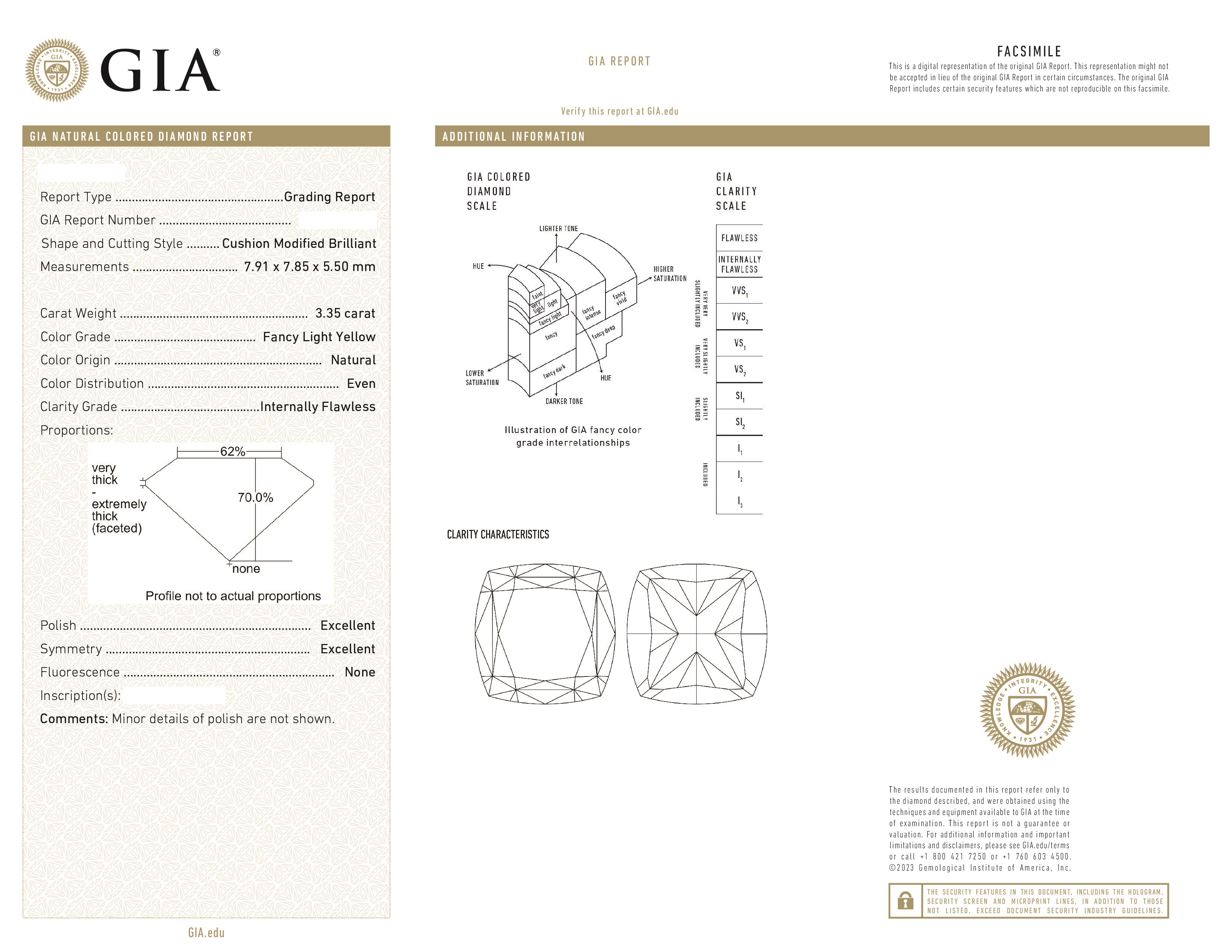 Вставка 1 бриллиант 3,06 ct. Fancy Light Yellow/Internally Flawless; 1 бриллиант 3,35 ct. Fancy Light Yellow/Internally Flawless; бриллиантовое паве