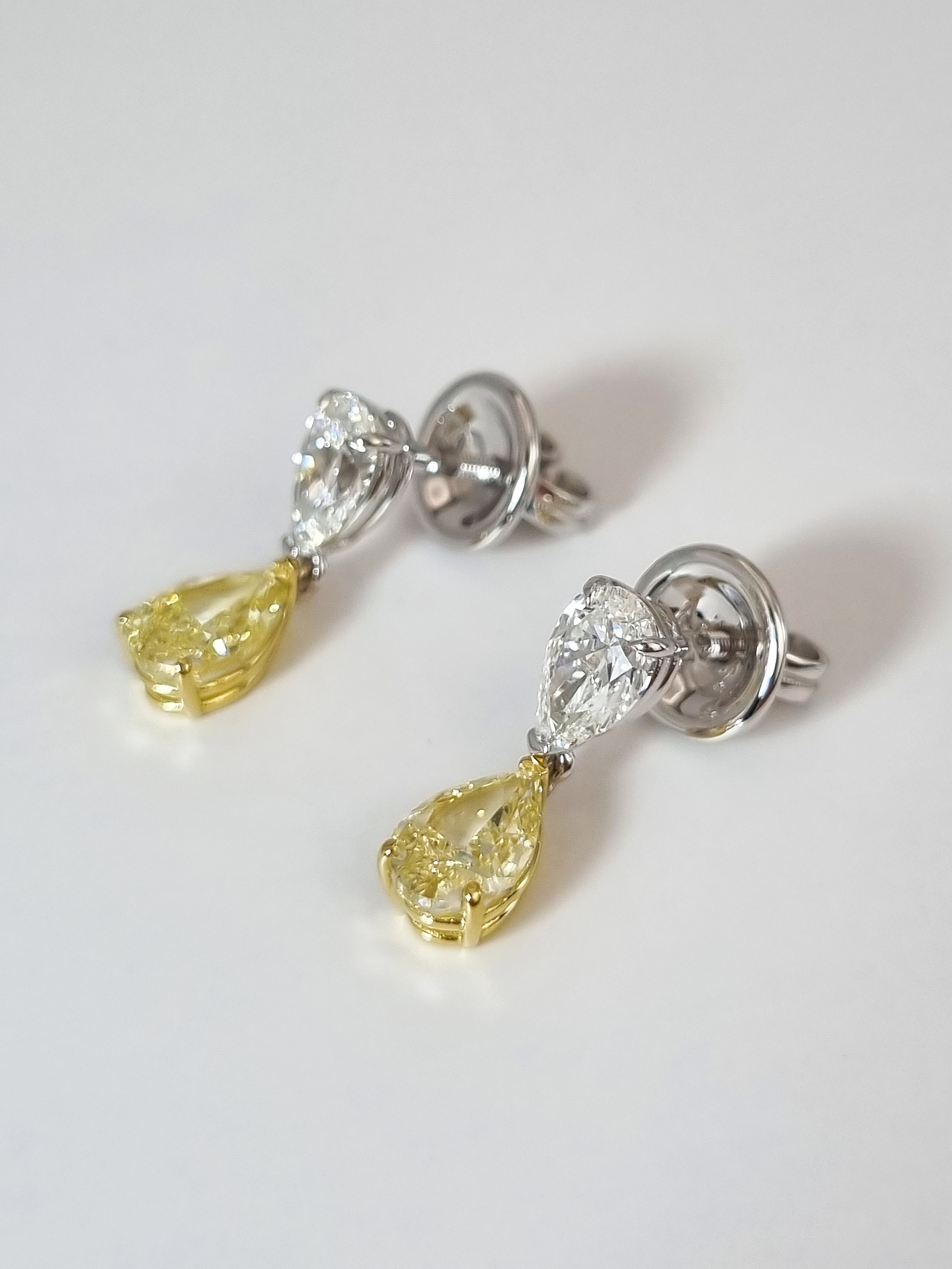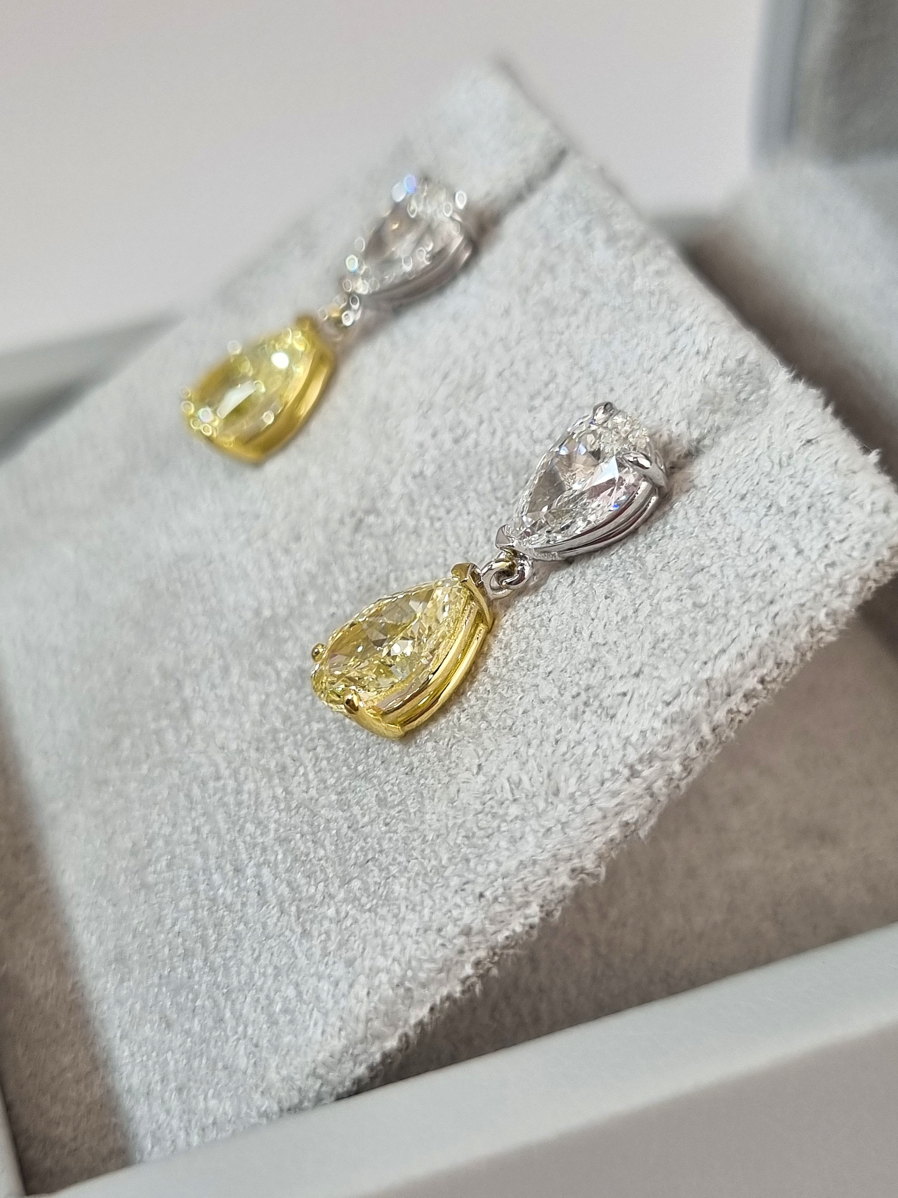 Серьги представляют собой настоящий шедевр ювелирного искусства, где каждый элемент продуман до мелочей. Бриллианты, вставленные в изделие, поражают своей чистотой и блеском, а форма "грушевидная" добавляет им особую изящность и элегантность.