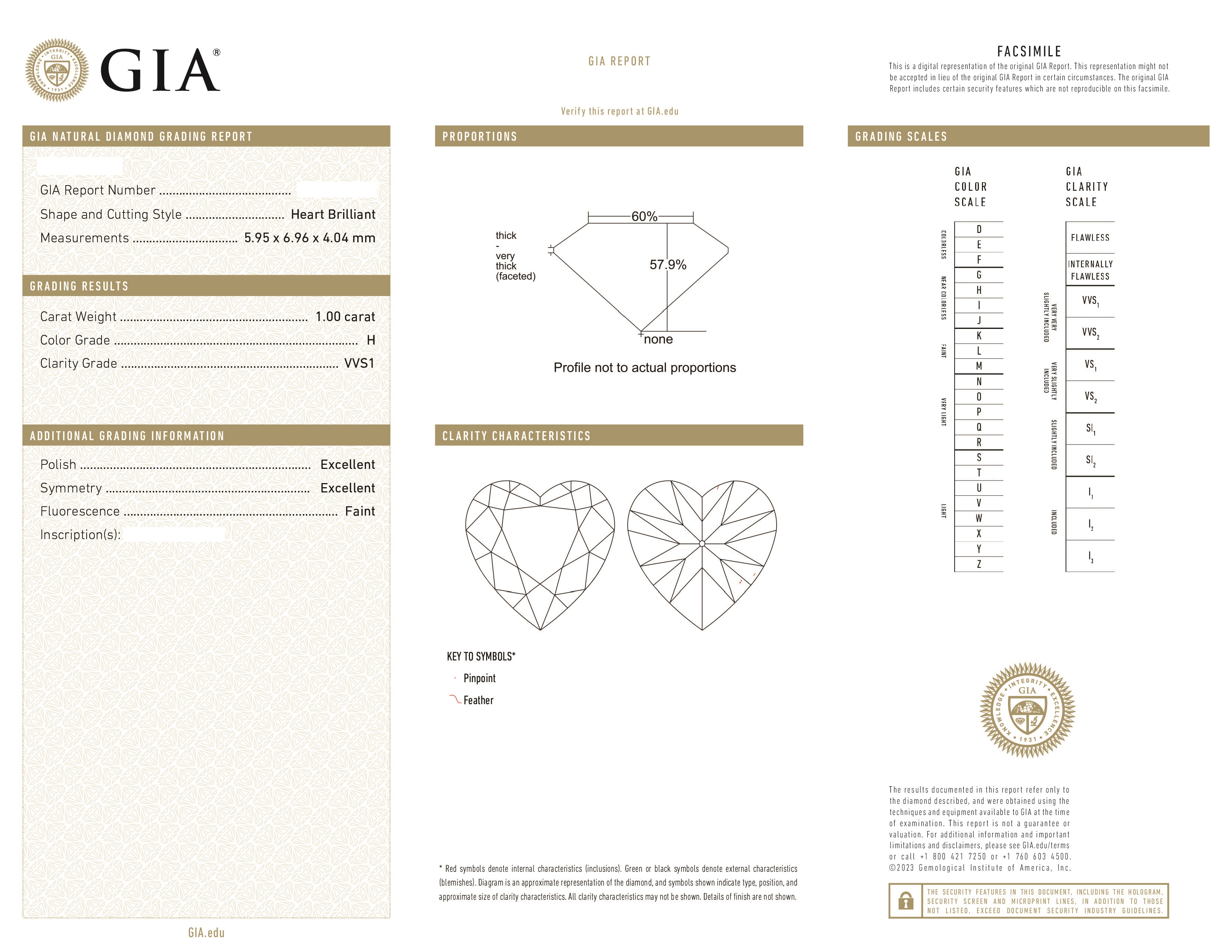 Вставка 1 бриллиант 1,00 ct. H/VVS1; 1 бриллиант 1,01 ct. H/VVS2