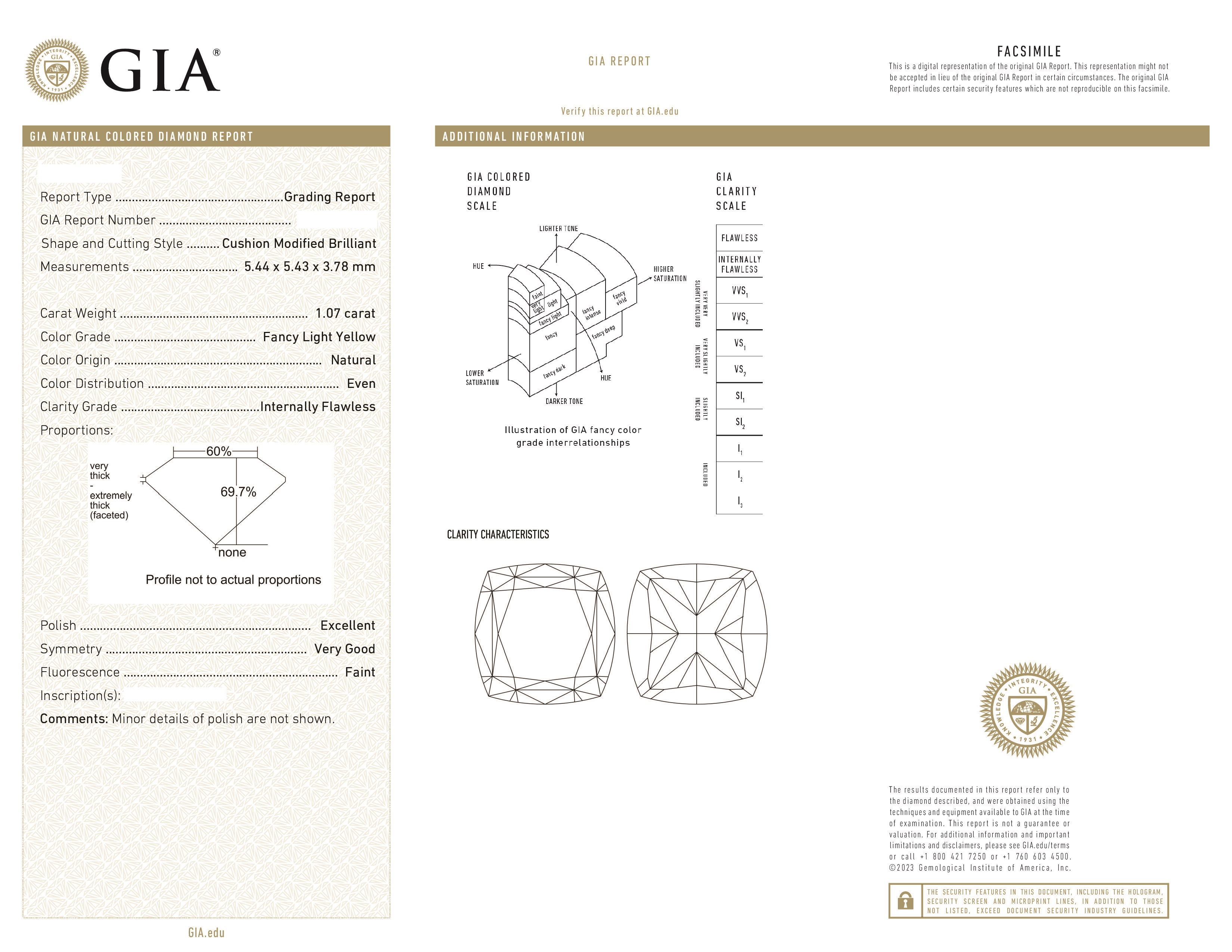 Вставка 1 бриллиант 1,07 ct. Fancy Light Yellow/Internally Flawless; 1 бриллиант 1,08 ct. Fancy Light Yellow/VVS1