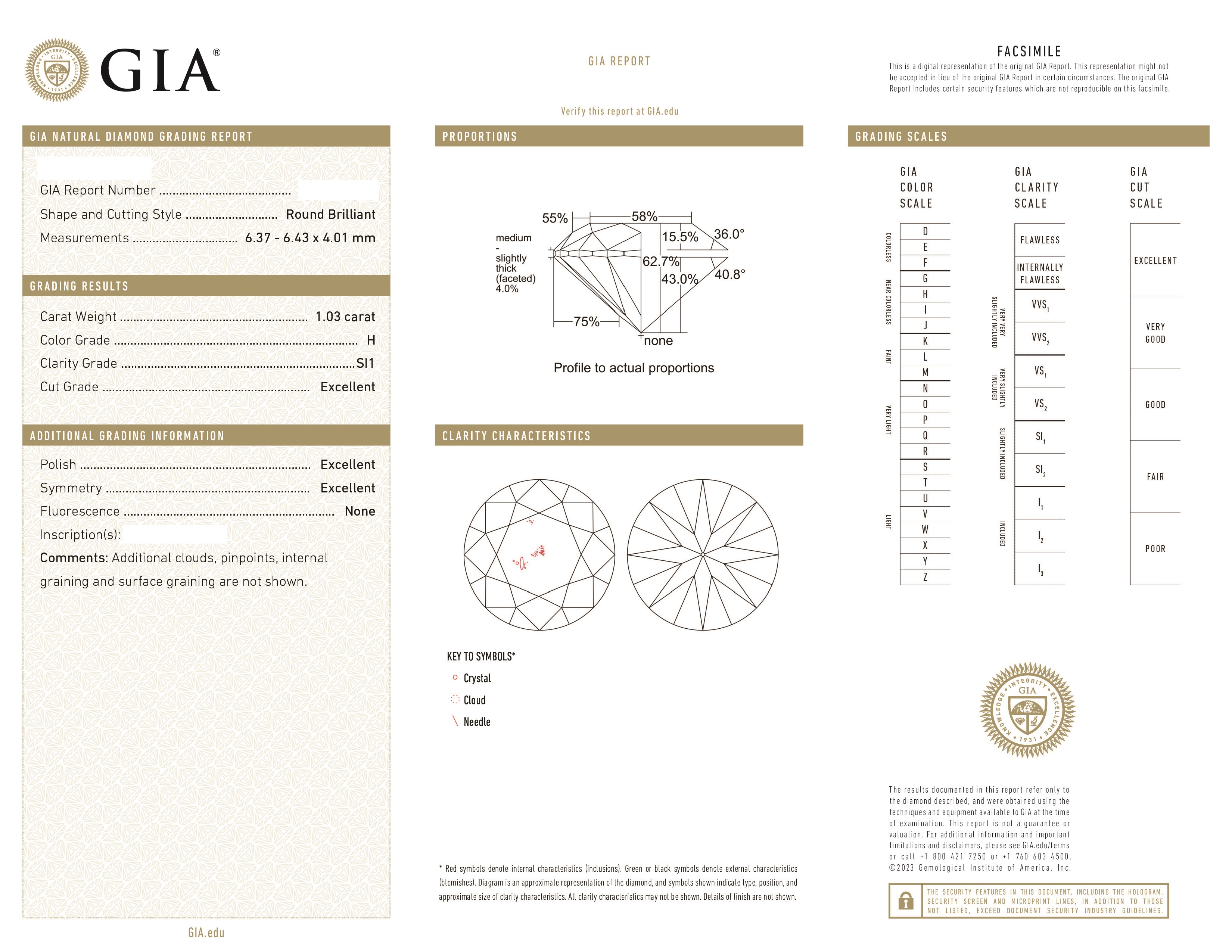Вставка 1 бриллиант 1,00 ct. H/Si1 (3 excellent);1 бриллиант 1,03 ct. H/Si1 (3 excellent)