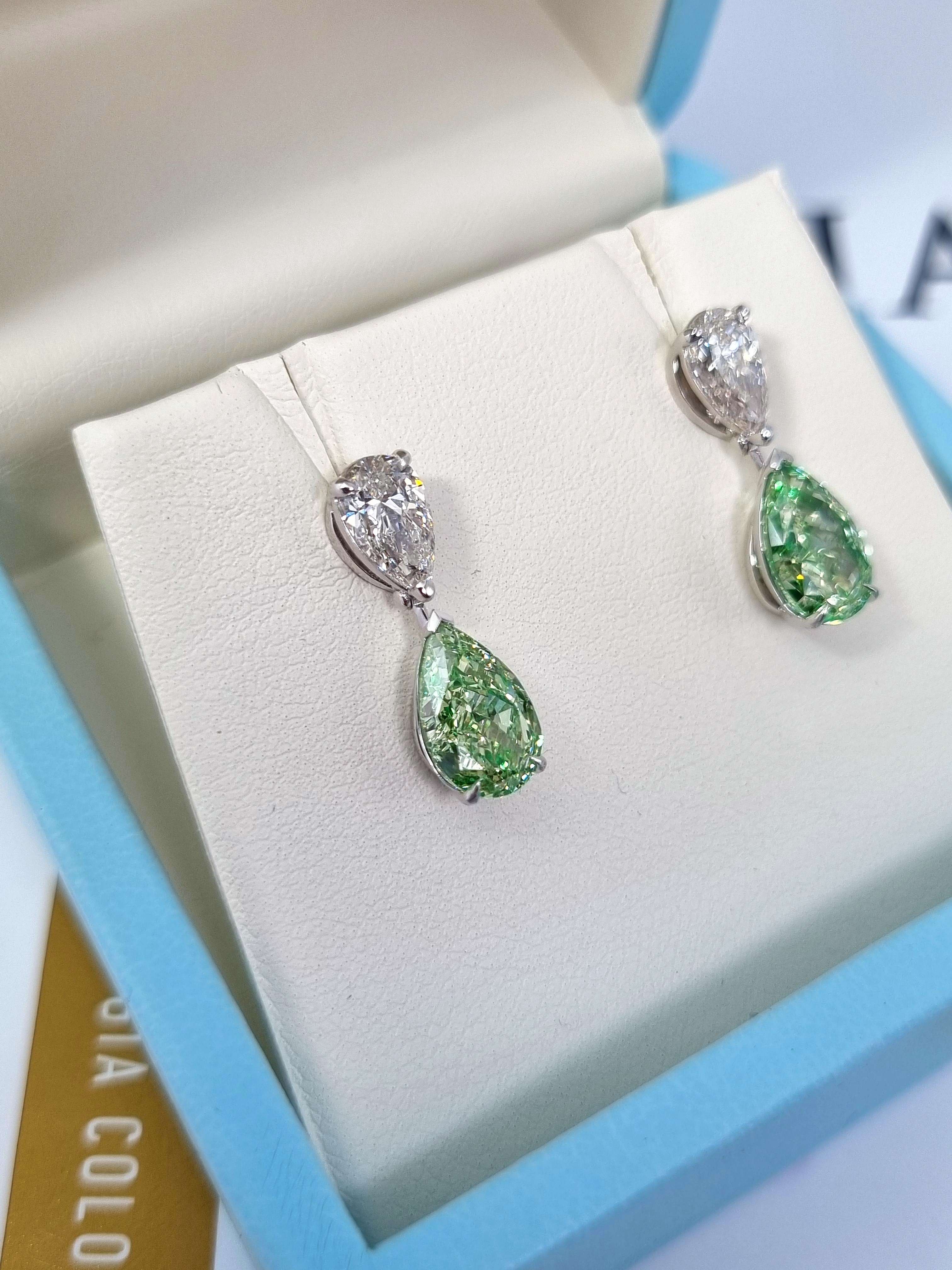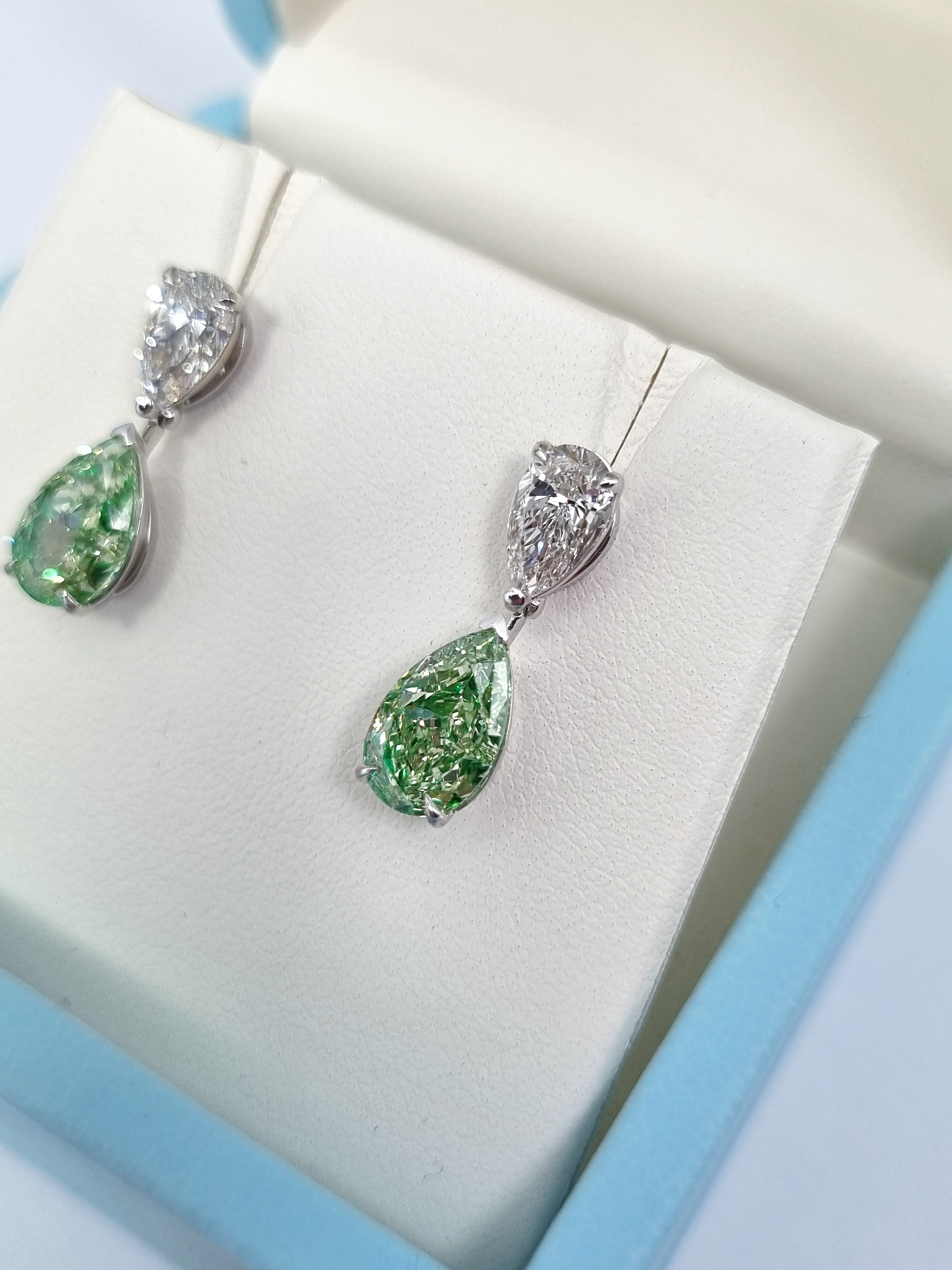 Вставка 1 бриллиант 1,51 ct. Fancy Brownish Greenish Yellow/VS1; 1 бриллиант 1,51 ct. Fancy Light Brownish Greenish Yellow/Si1; верхние бриллианты общей массой 1,40 ct. H/VS+