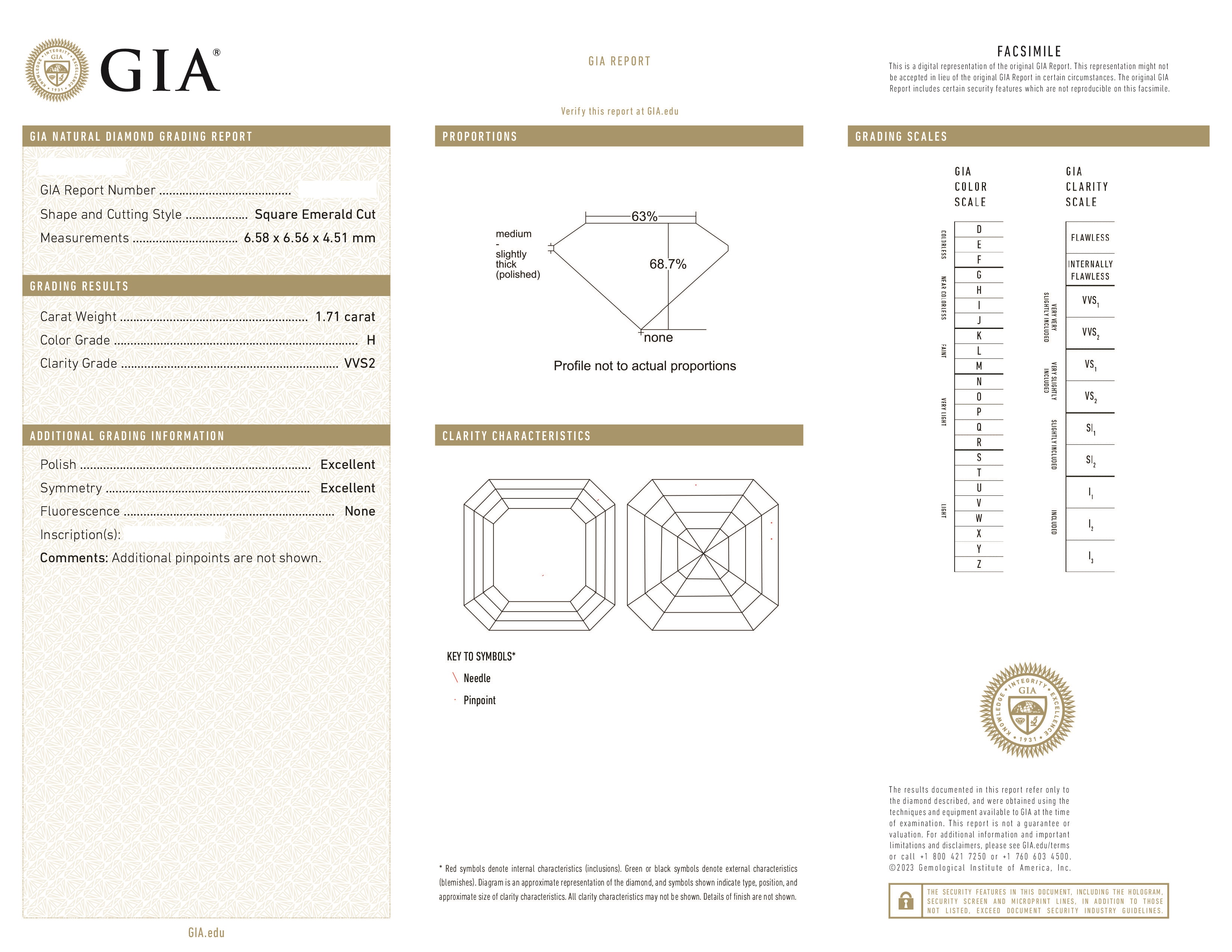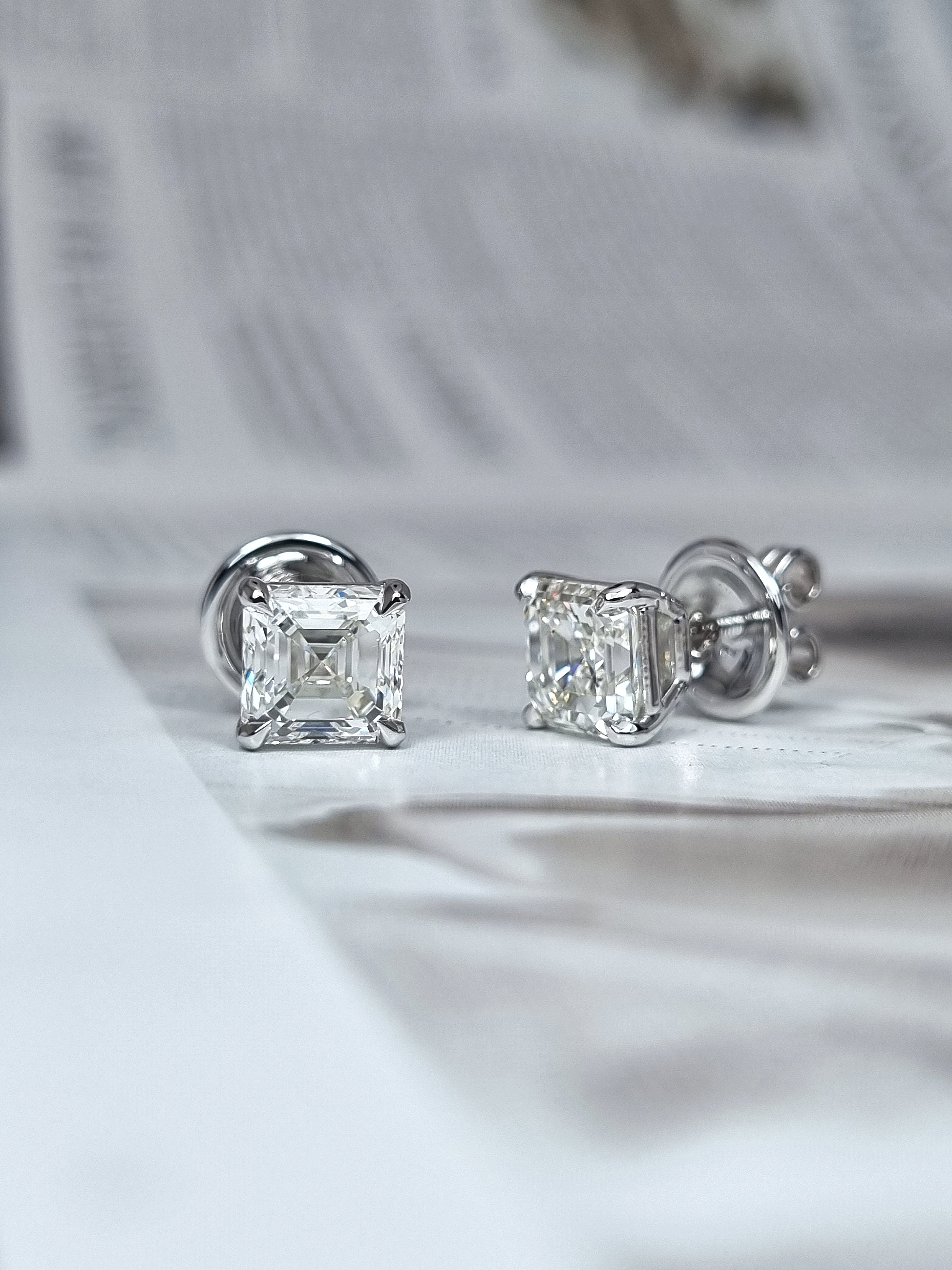 GIA Серьги с бриллиантами 1,71/1,74 Ct. H/vvs (asscher Cut)