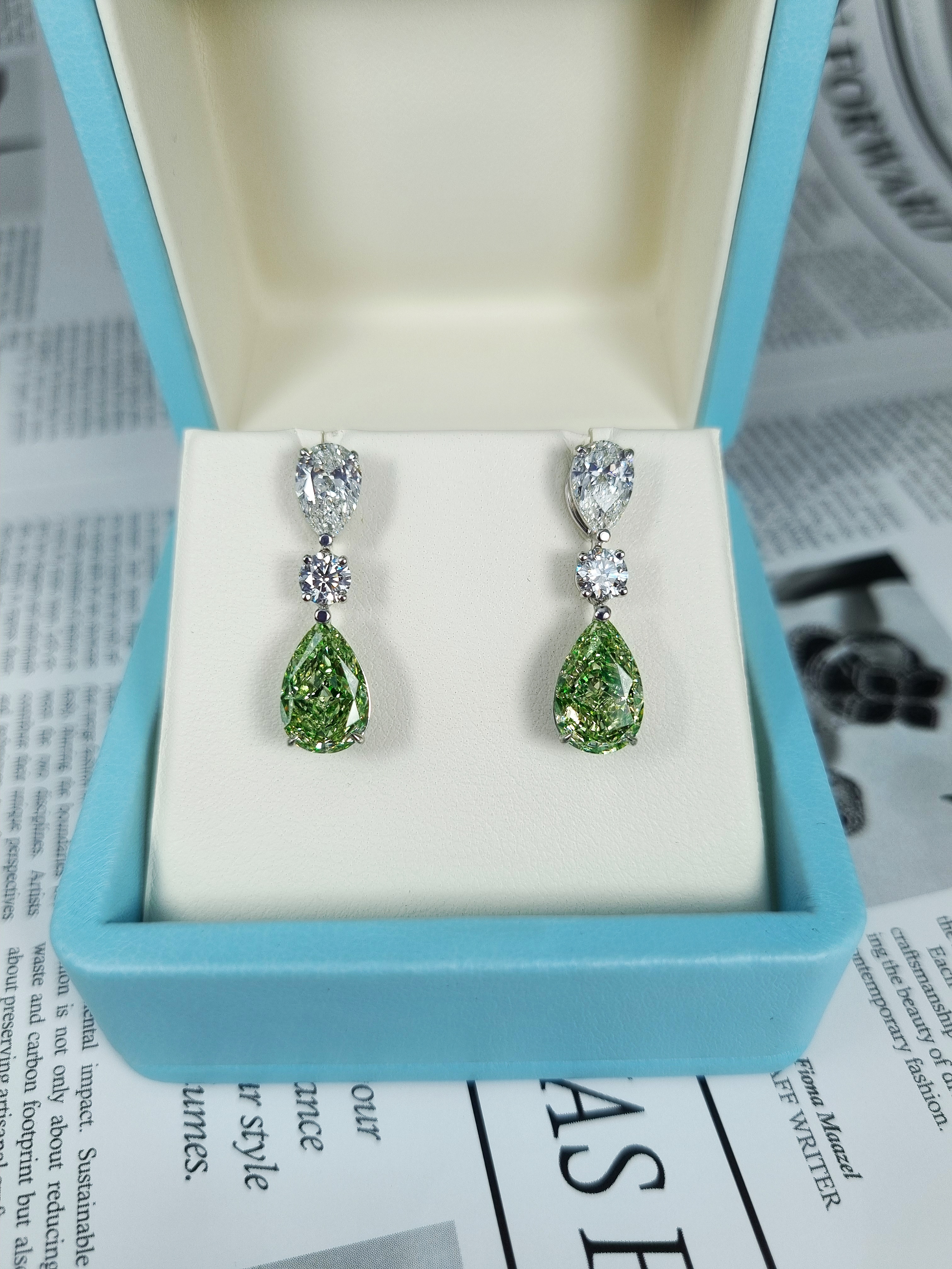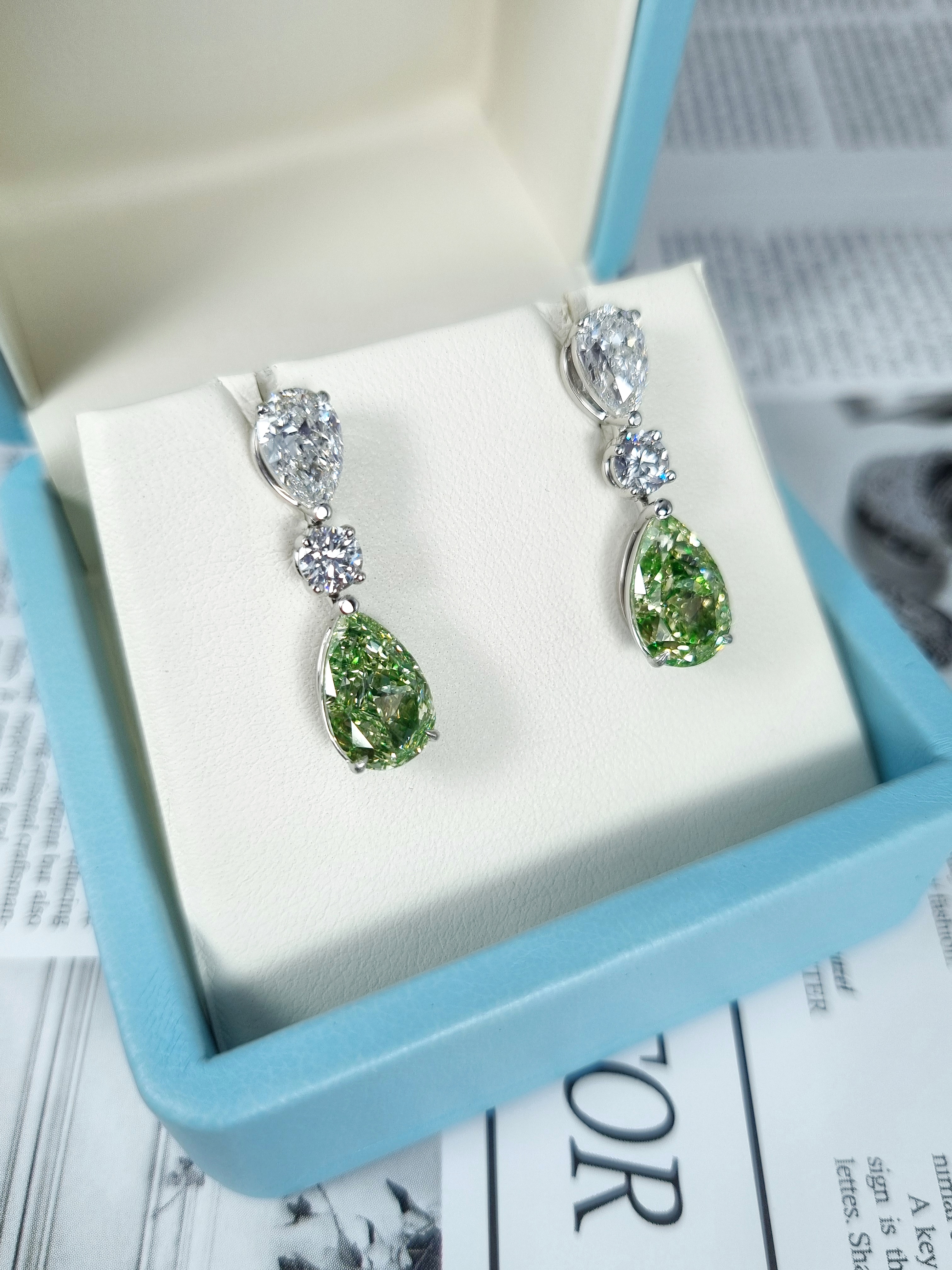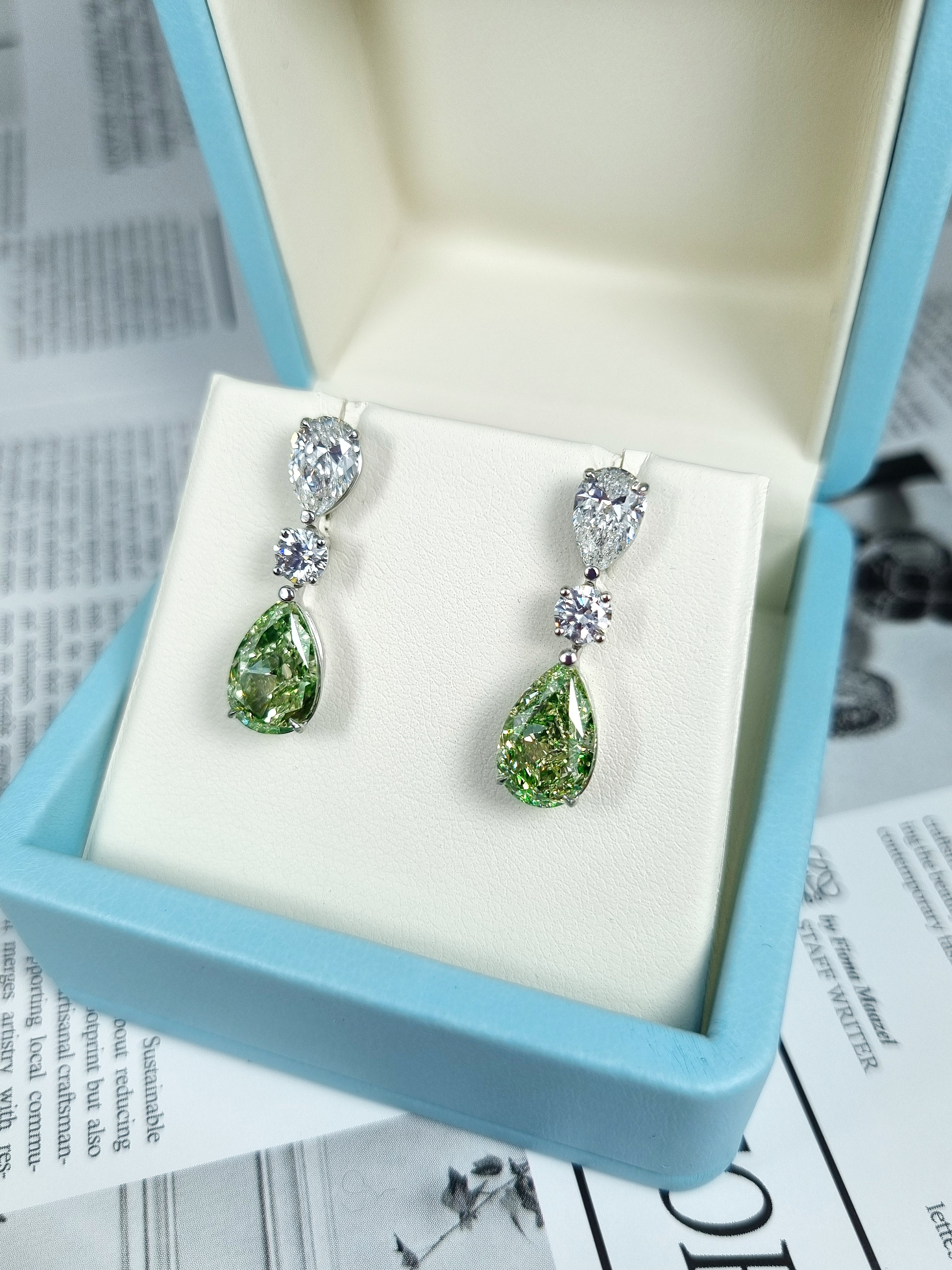 Вставка Нижние бриллианты: 2,01 ct. Fancy Light Brownish Greenish Yellow/VVS1; 2,03 ct. Fancy Brownish Greenish Yellow/VVS2; Верхние бриллианты огранки «Pear» общим весом 1,40 ct. H/VS1