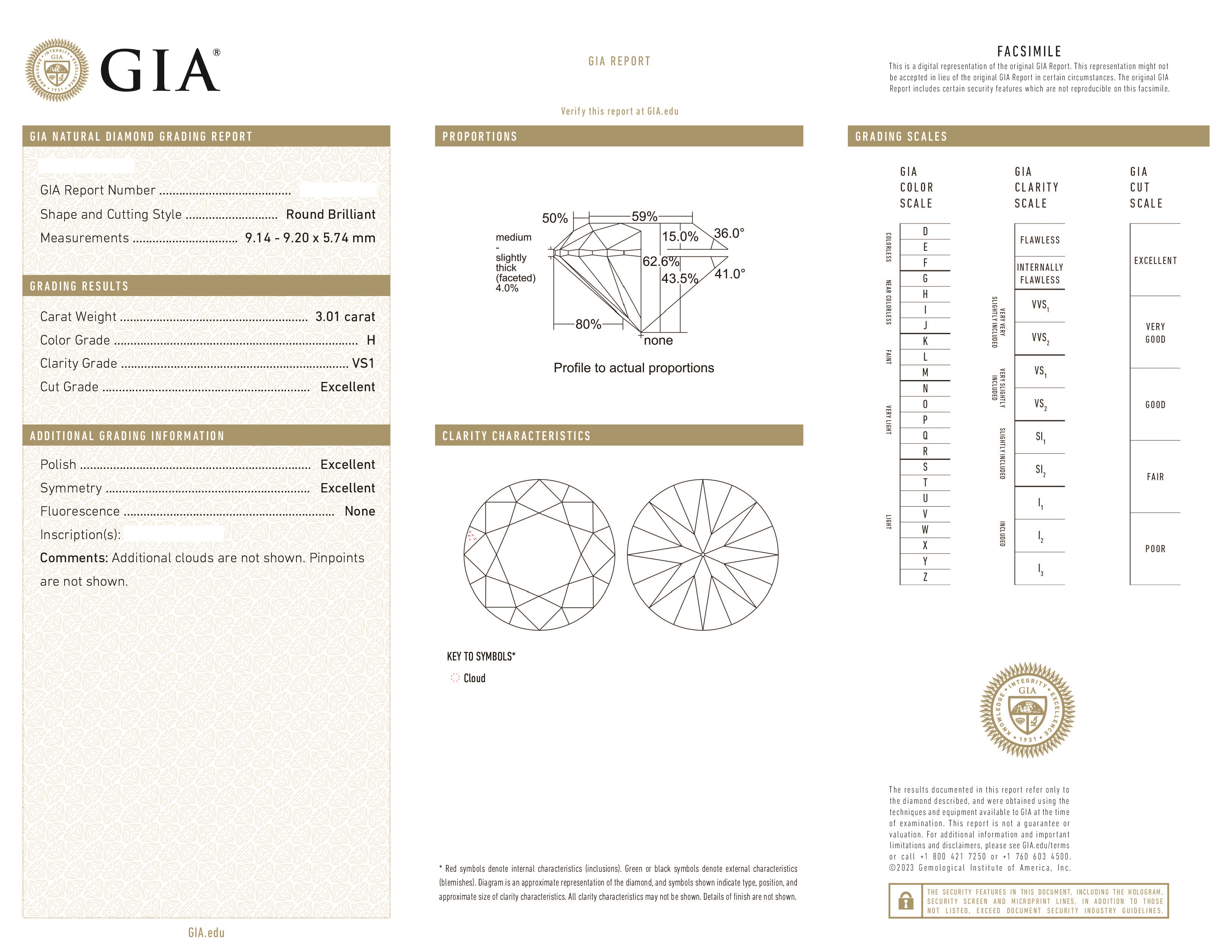 Вставка 1 бриллиант 3,01 ct. H/VS1 (3 excellent); 1 бриллиант 3,02 ct. H/VS1 (3 excellent)