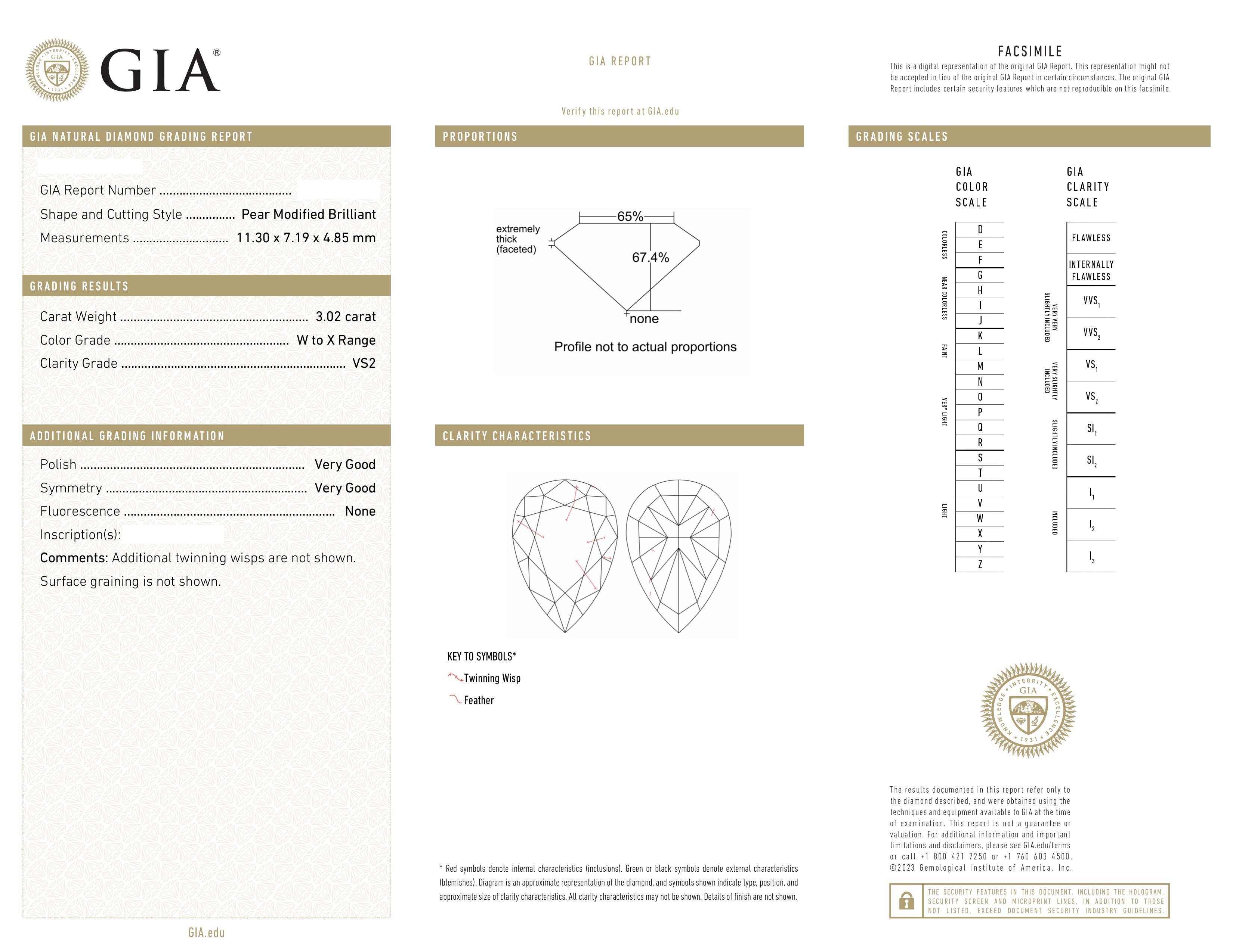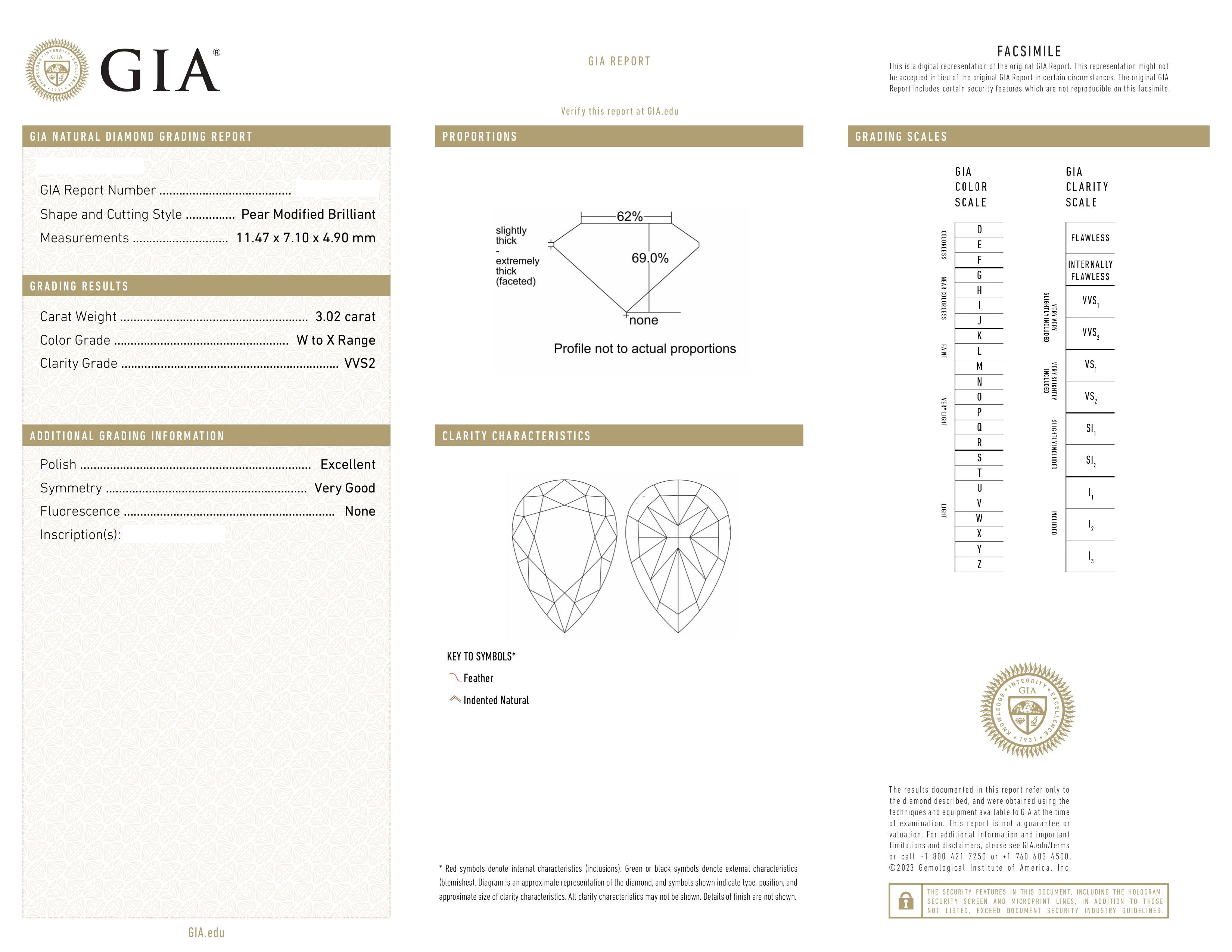 Вставка Нижние бриллианты: 1 бриллиант 3,02 ct. W to X/VVS2 (Pear), 1 бриллиант 3,02 ct. W to X/VS2 (Pear). Верхние бриллианты: 0,90/0,90 ct. I/VS1 (Pear)