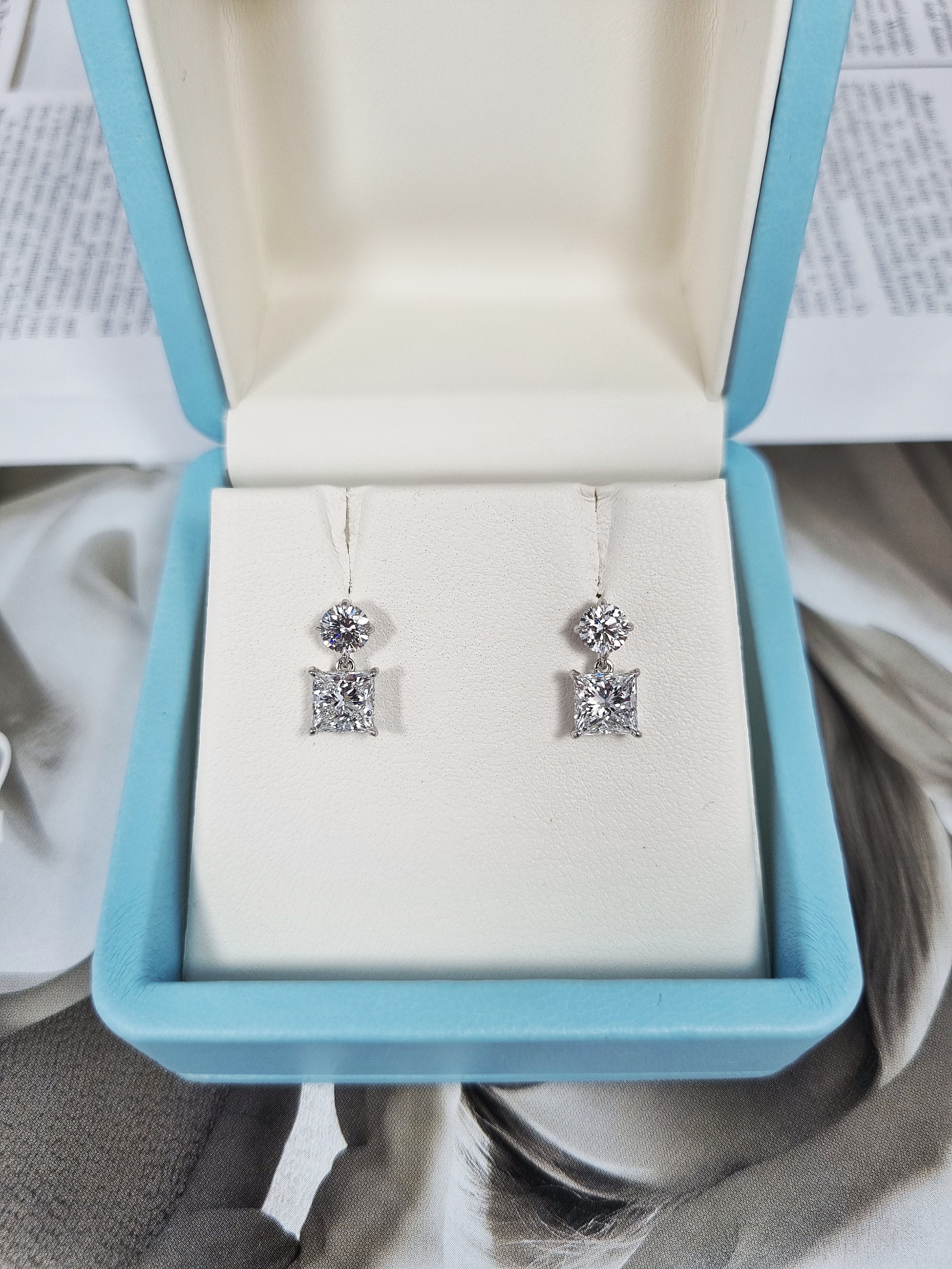 Вставка Нижние бриллианты огранки "Принцесса" общей массой 2,02 ct. F/VVS2; Верхние бриллианты общей массой 0,65 ct. F/VS2