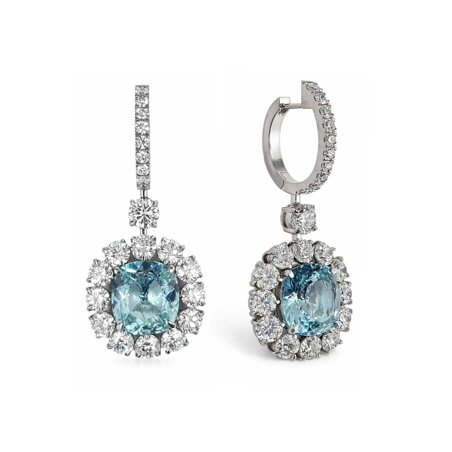 Вставка 1 турмалин "Параиба" 5,16 ct. Greenish Blue (Mozambique); 1 турмалин "Параиба" 5,40 ct. Greenish Blue (Mozambique); 26 бриллиантов общим весом 8,33 ct. H/VVS-VS (3 excellent); бриллиантовое паве