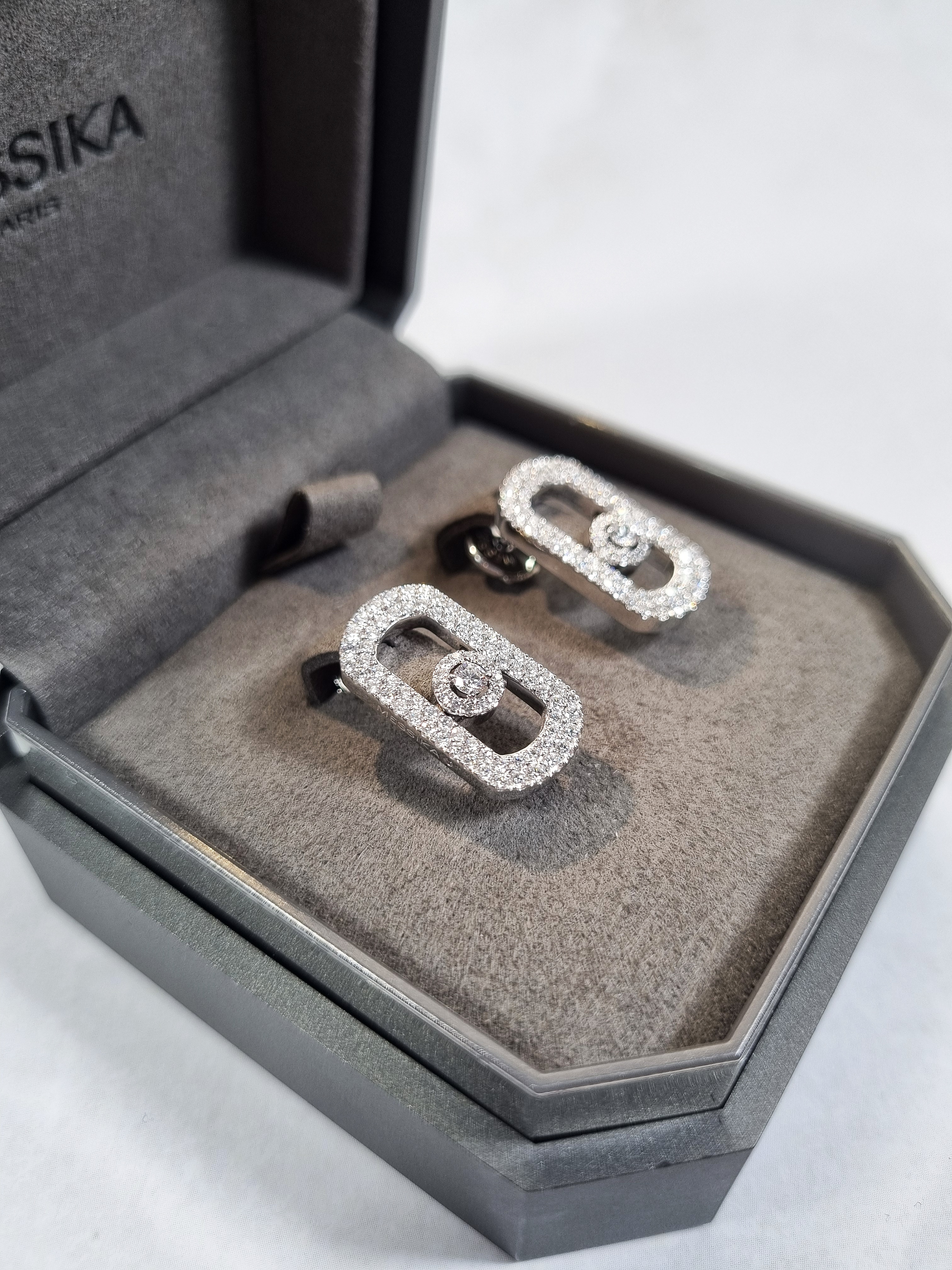 Не упустите возможность стать обладателем этого шедевра и сделать ваш образ по-настоящему неповторимым. Приходите в наш салон «Мануфактура» и убедитесь в качестве и уникальности So Move Pavé Earrings от MESSIKA.