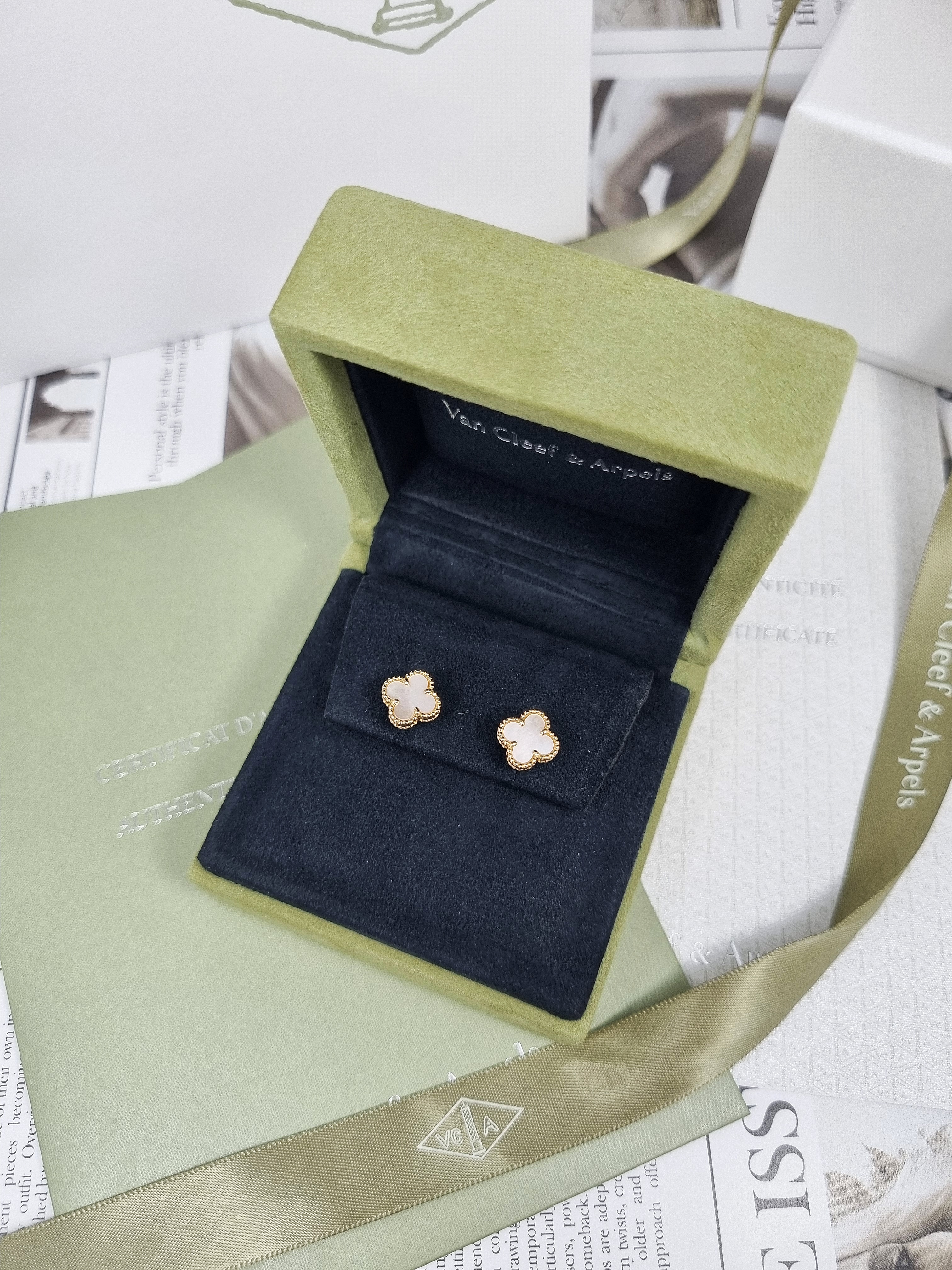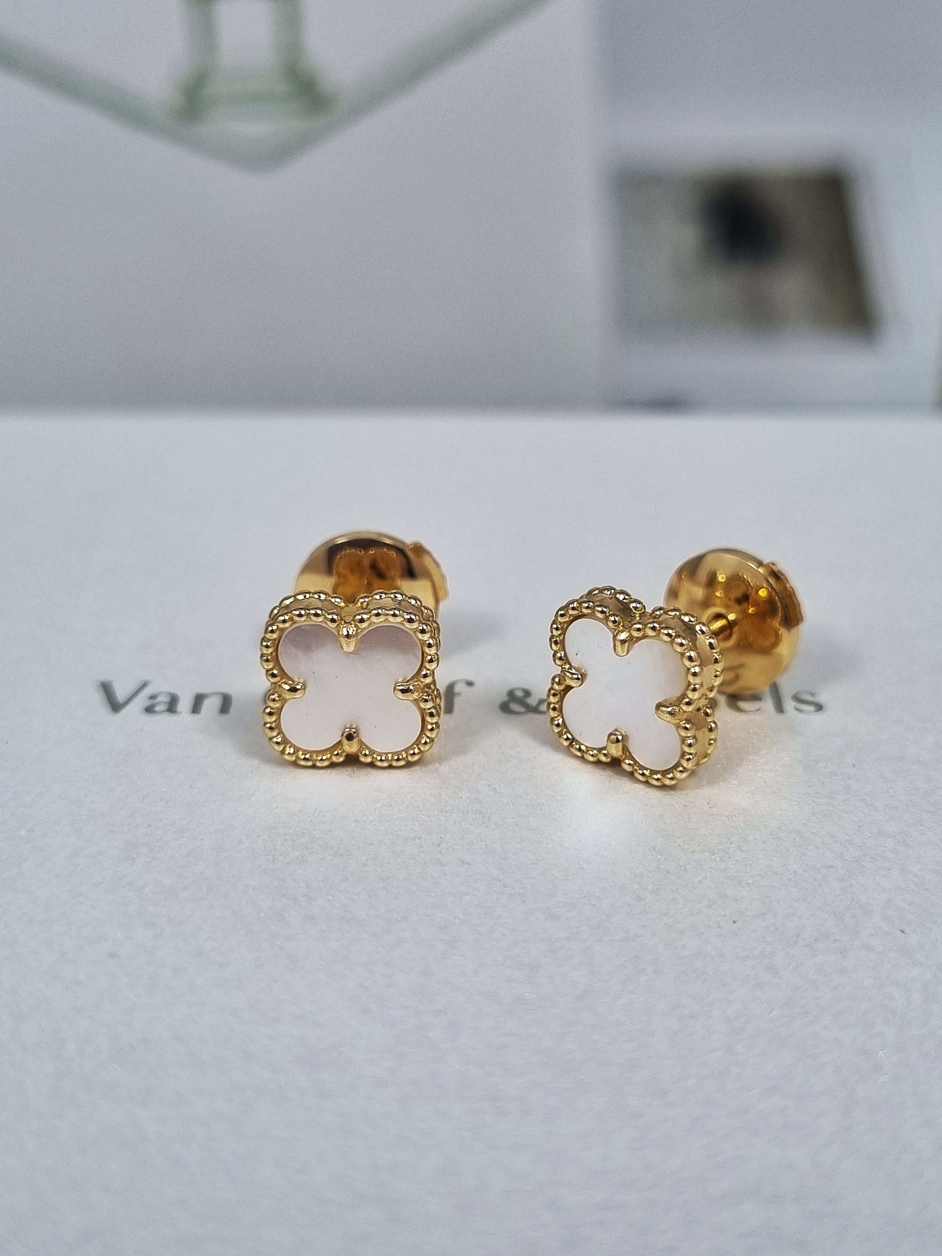 Van Cleef & Arpels Sweet Alhambra Earstuds Yellow Gold Mop