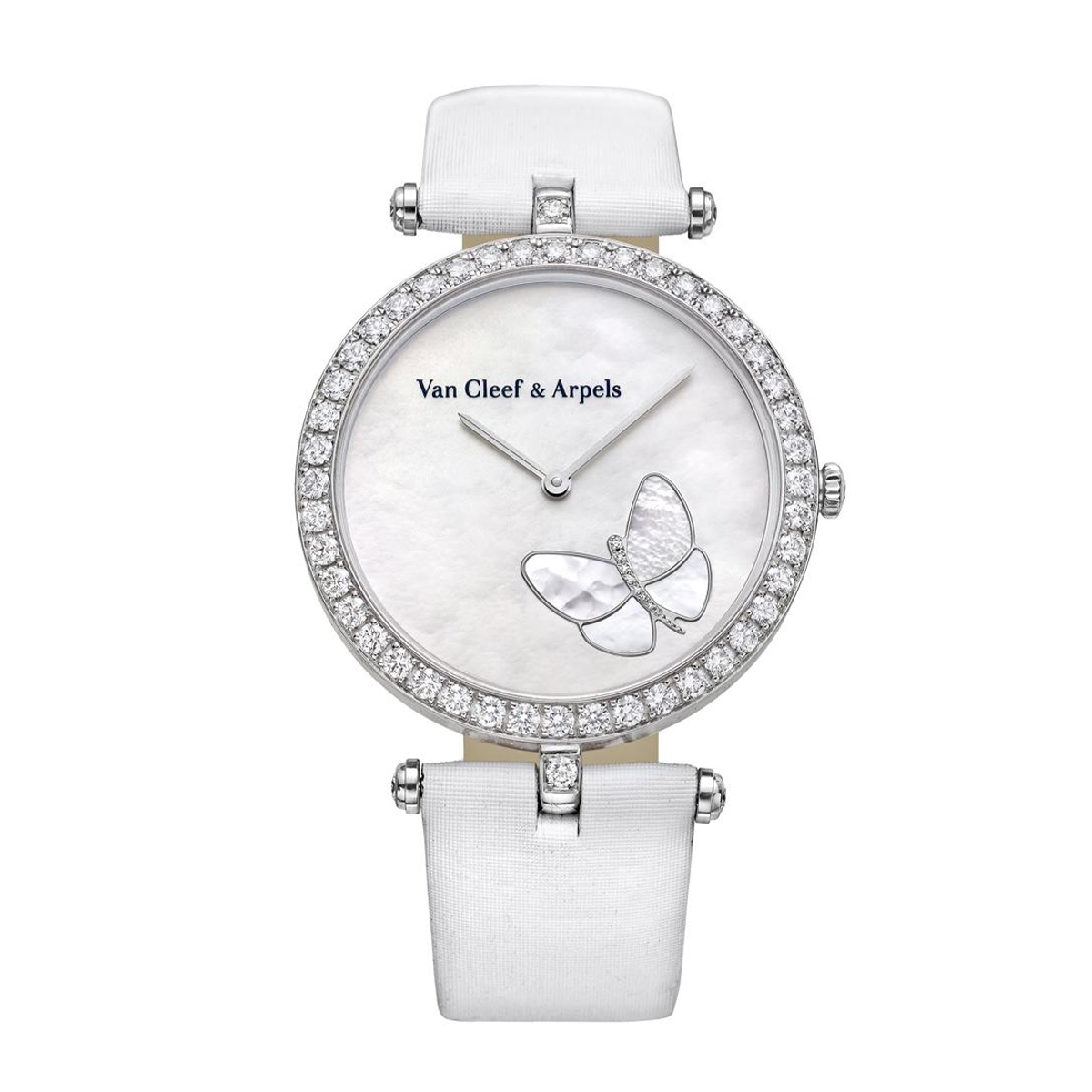 Часы LADY ARPELS BUTTERFLY выполнены из белого золота, что придает им особую изящность и утонченность. Размер корпуса составляет 36 мм, что делает их идеально подходящими для женской руки. Ремешок из натуральной кожи добавляет дополнительный акцент на элегантность и комфорт в носке.