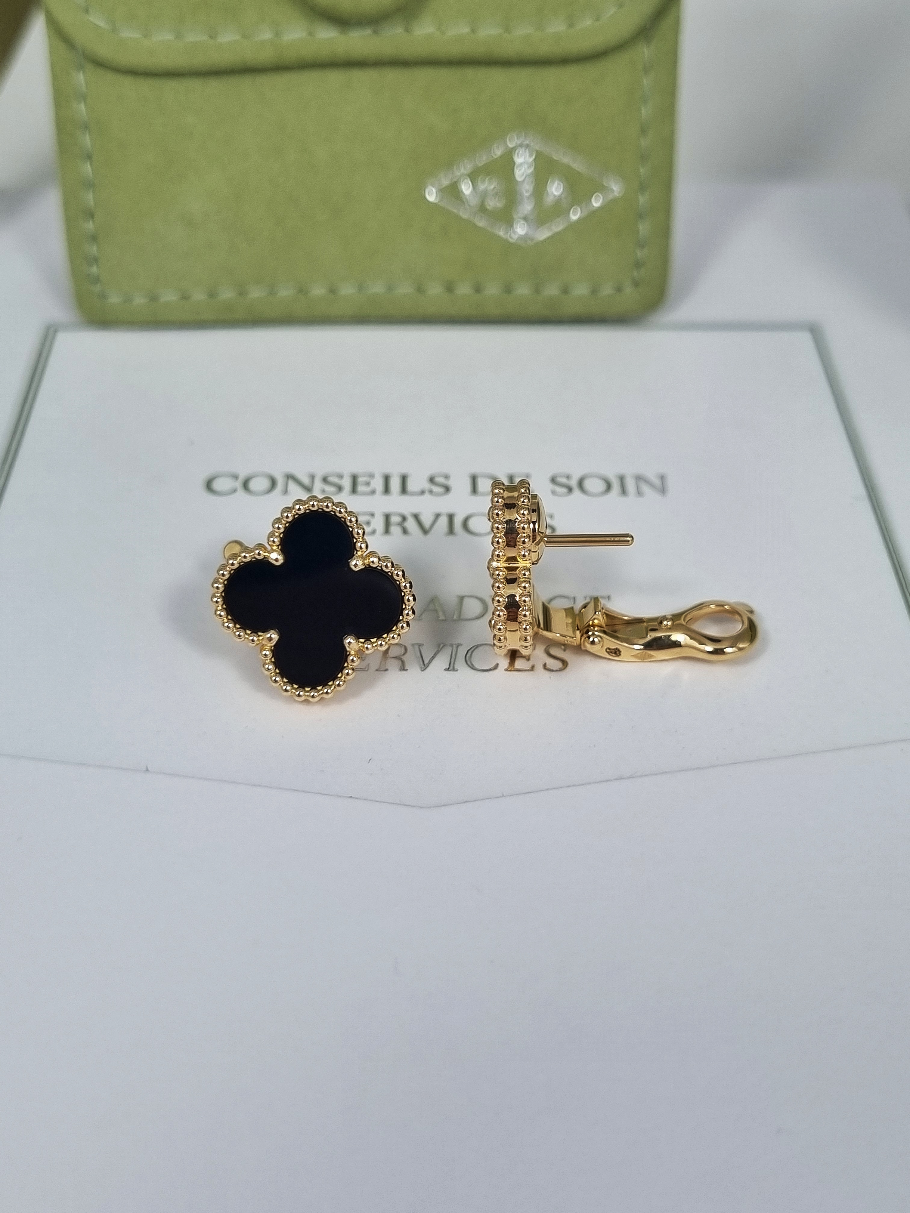 Van Cleef & Arpels Vintage Alhambra Earrings Onyx