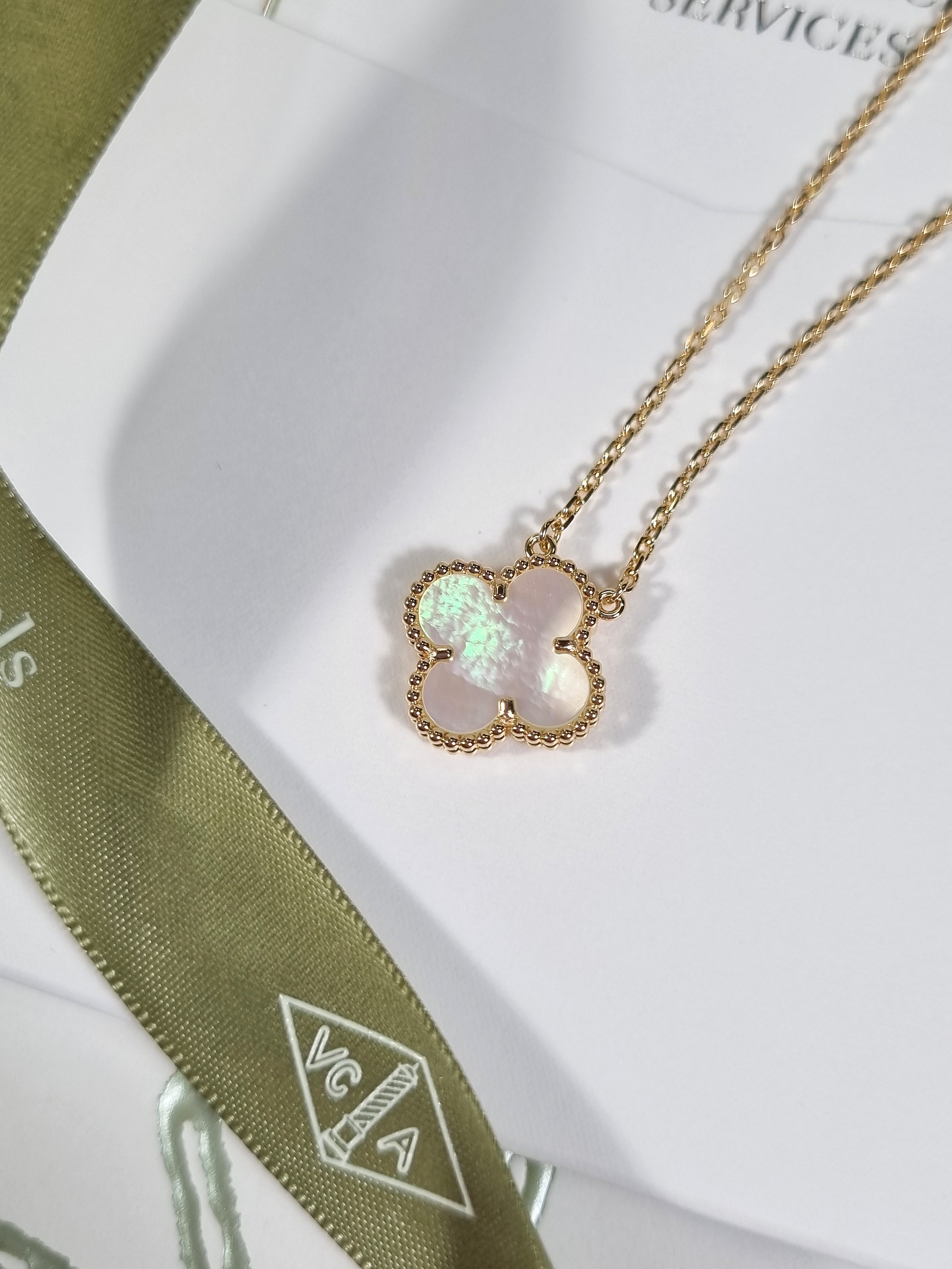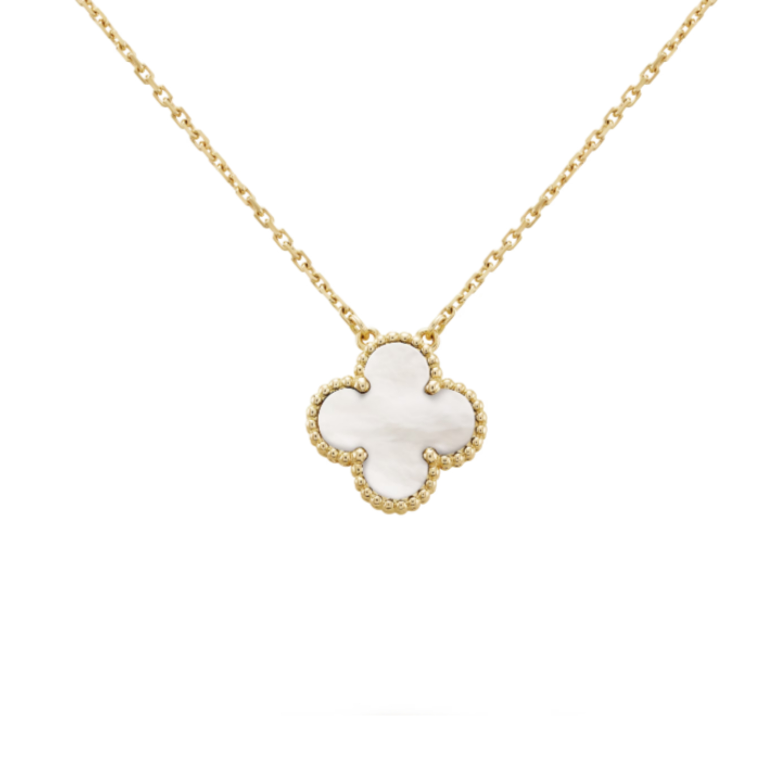 Пендант "Vintage Alhambra" выполнен из желтого золота 750 пробы, что придает ему особую роскошь и благородство. В центре изделия находится перламутровая вставка, которая добавляет ему мягкий, таинственный блеск. Этот пендант станет идеальным дополнением к любому образу, будь то деловой костюм или вечернее платье.