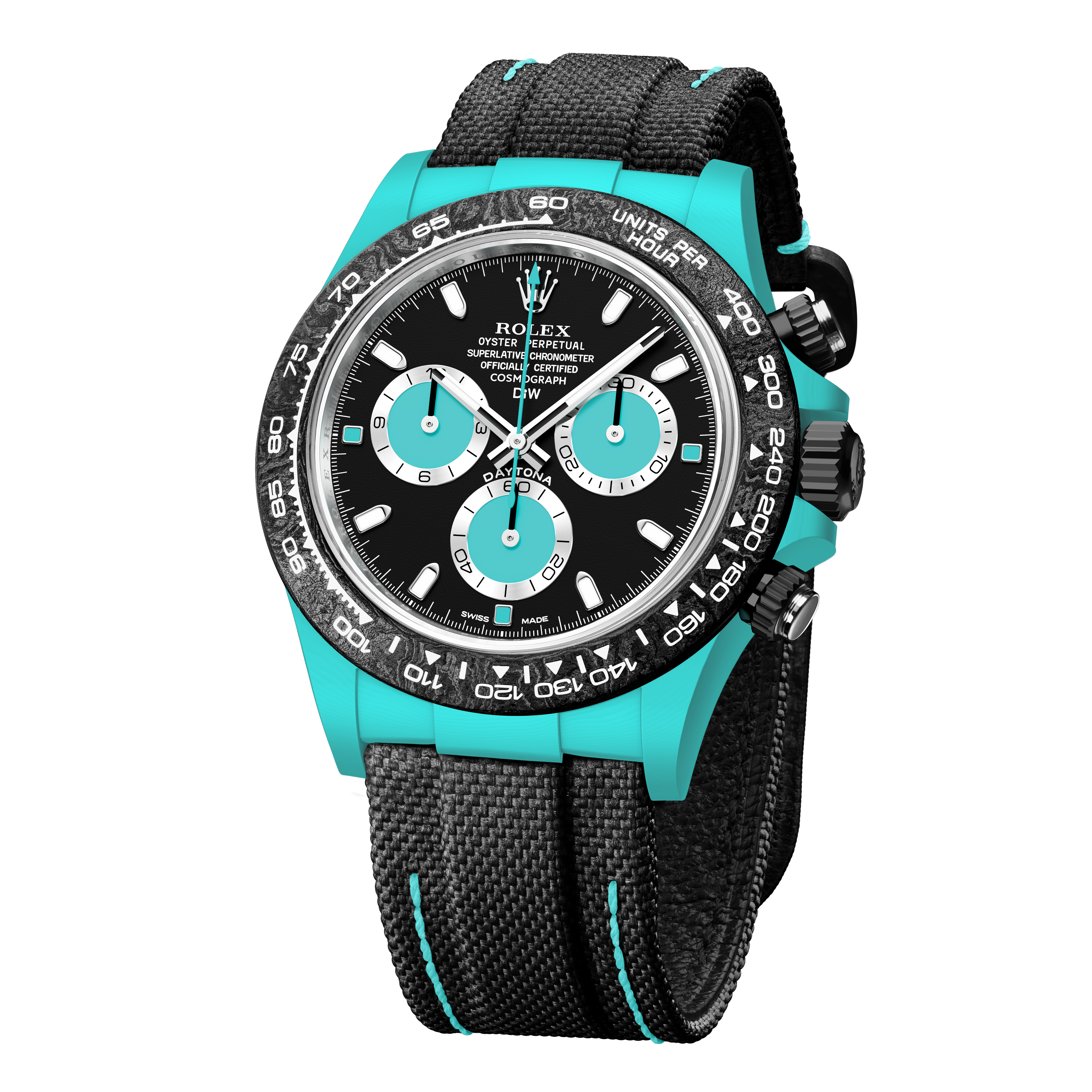 Rolex DiW (Designa Individual Watches) — это ультраэксклюзивная модификация оригинальных часов Rolex, выполненная в авангардном стиле с применением современных материалов, нестандартной палитры и бескомпромиссной точности. Это не просто часы — это персонализированное произведение инженерного и дизайнерского искусства.