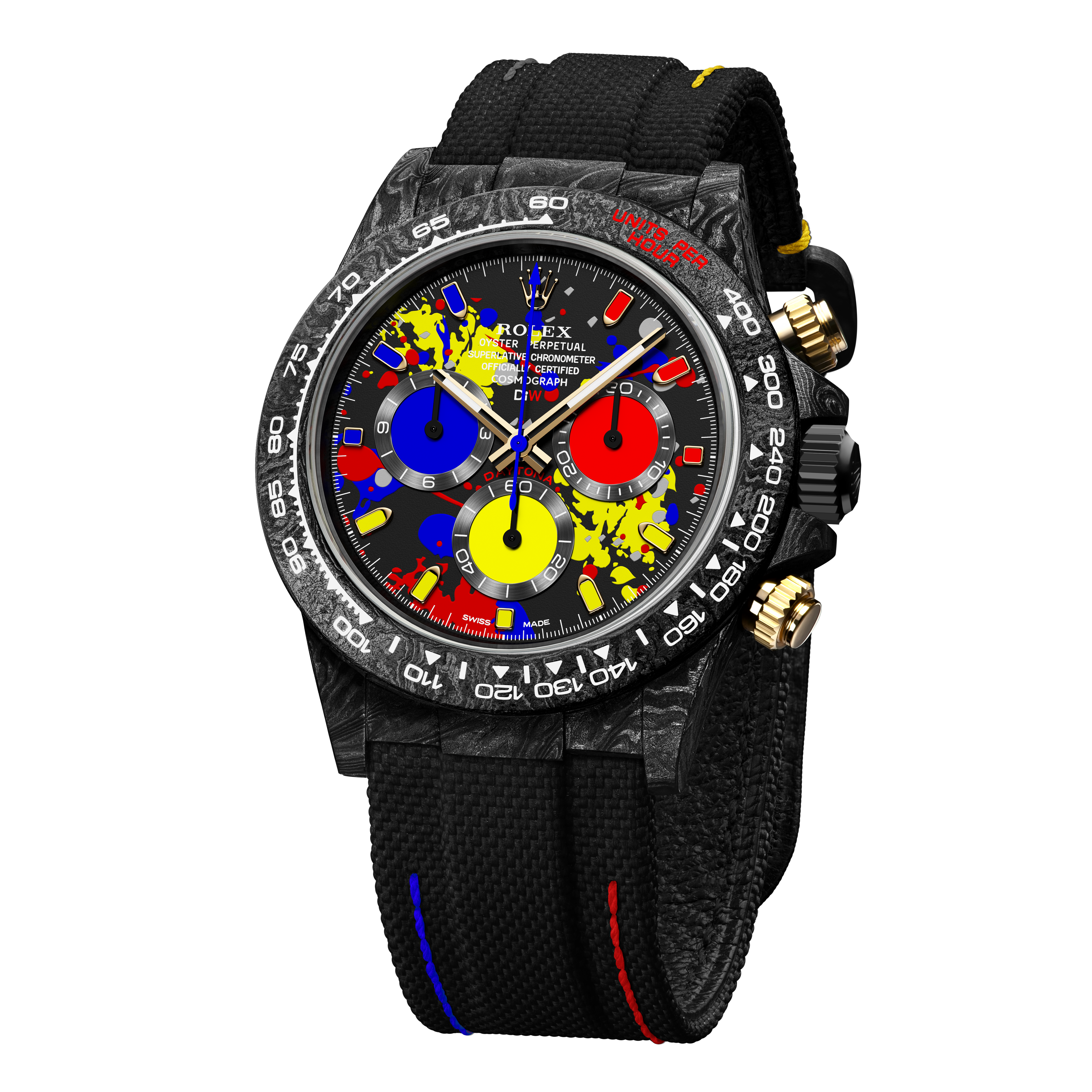 Rolex DiW (Designa Individual Watches) — это ультраэксклюзивная модификация оригинальных часов Rolex, выполненная в авангардном стиле с применением современных материалов, нестандартной палитры и бескомпромиссной точности. Это не просто часы — это персонализированное произведение инженерного и дизайнерского искусства.