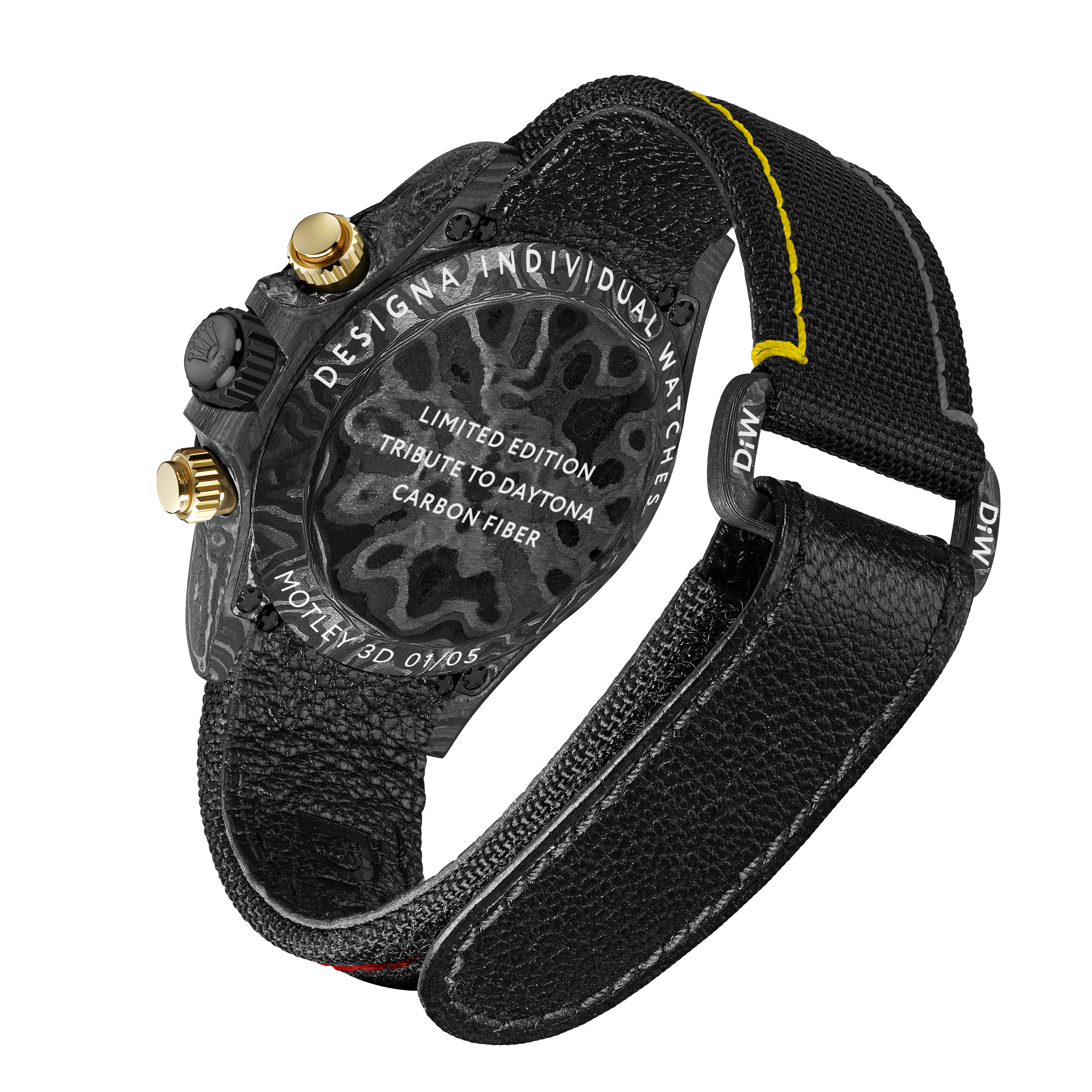 Каждая модель DiW создаётся на основе подлинного механизма и корпуса Rolex, которые проходят глубокую индивидуальную переработку. Бренд специализируется на карбоне, титане, керамике и редких декоративных решениях, выводя культовые модели Rolex на новый эстетический уровень. Читать о бренде...
