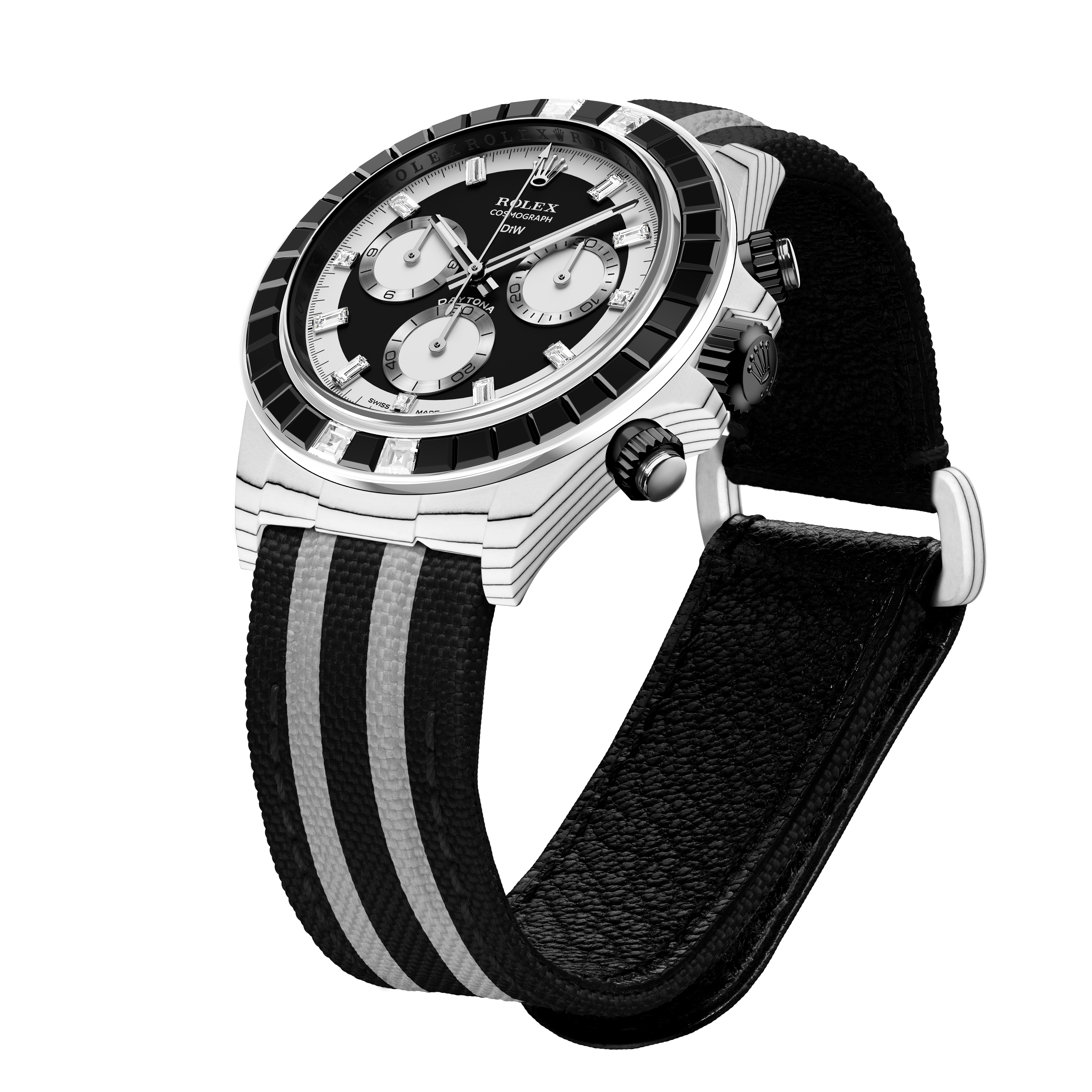 Rolex DiW (Designa Individual Watches) — это ультраэксклюзивная модификация оригинальных часов Rolex, выполненная в авангардном стиле с применением современных материалов, нестандартной палитры и бескомпромиссной точности. Это не просто часы — это персонализированное произведение инженерного и дизайнерского искусства.