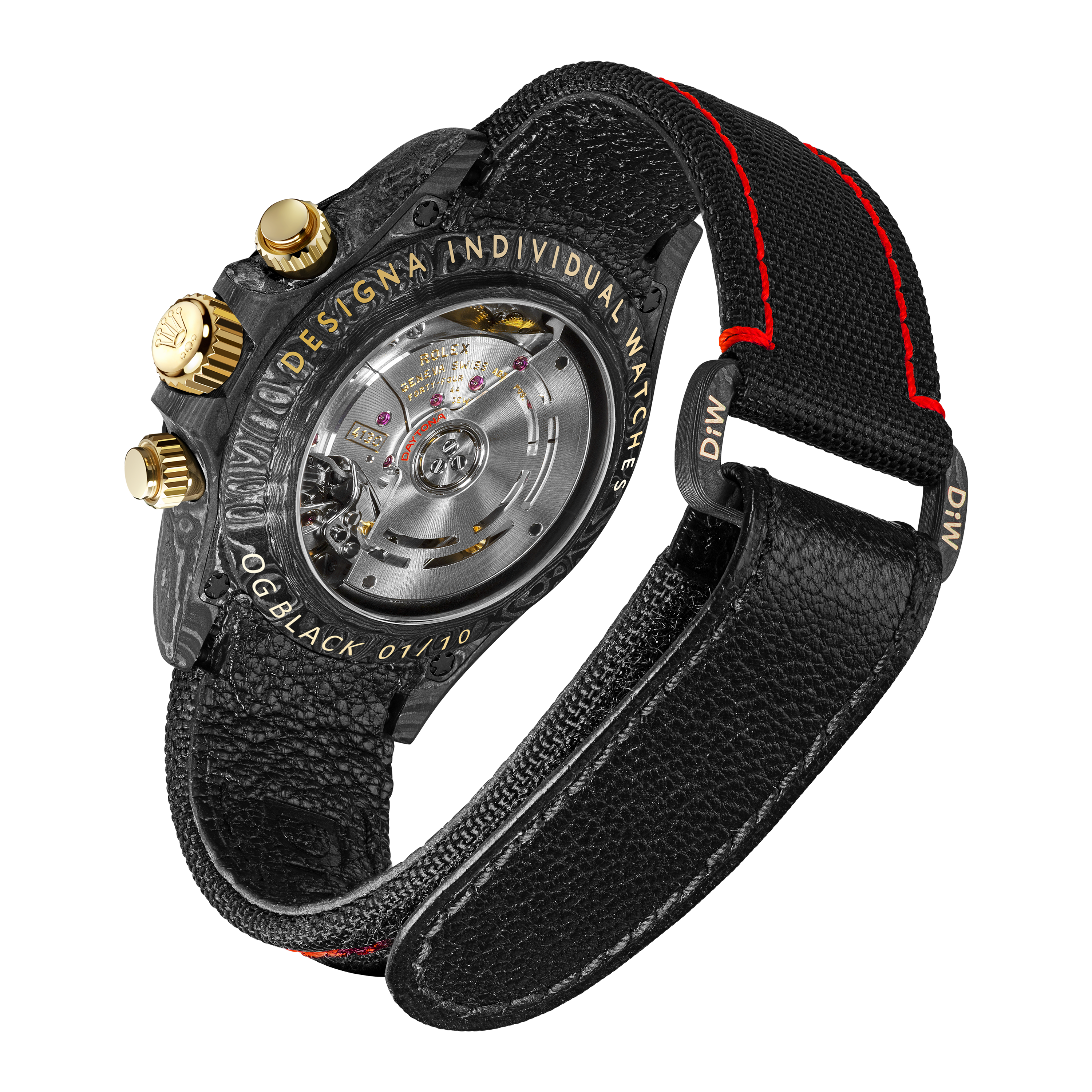 Каждая модель DiW создаётся на основе подлинного механизма и корпуса Rolex, которые проходят глубокую индивидуальную переработку. Бренд специализируется на карбоне, титане, керамике и редких декоративных решениях, выводя культовые модели Rolex на новый эстетический уровень. Читать о бренде...