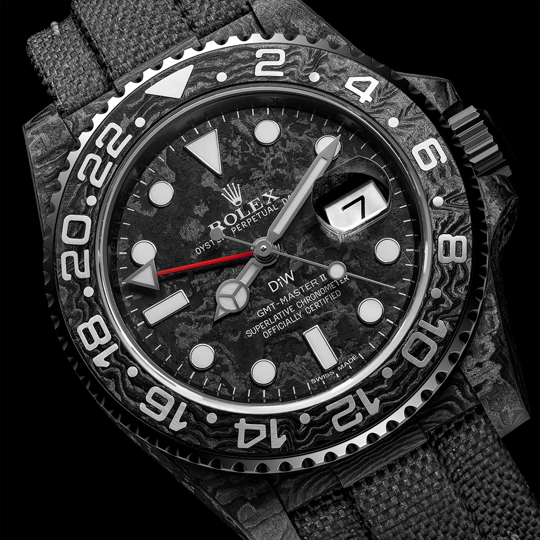 Каждая модель DiW создаётся на основе подлинного механизма и корпуса Rolex, которые проходят глубокую индивидуальную переработку. Бренд специализируется на карбоне, титане, керамике и редких декоративных решениях, выводя культовые модели Rolex на новый эстетический уровень. Читать о бренде...