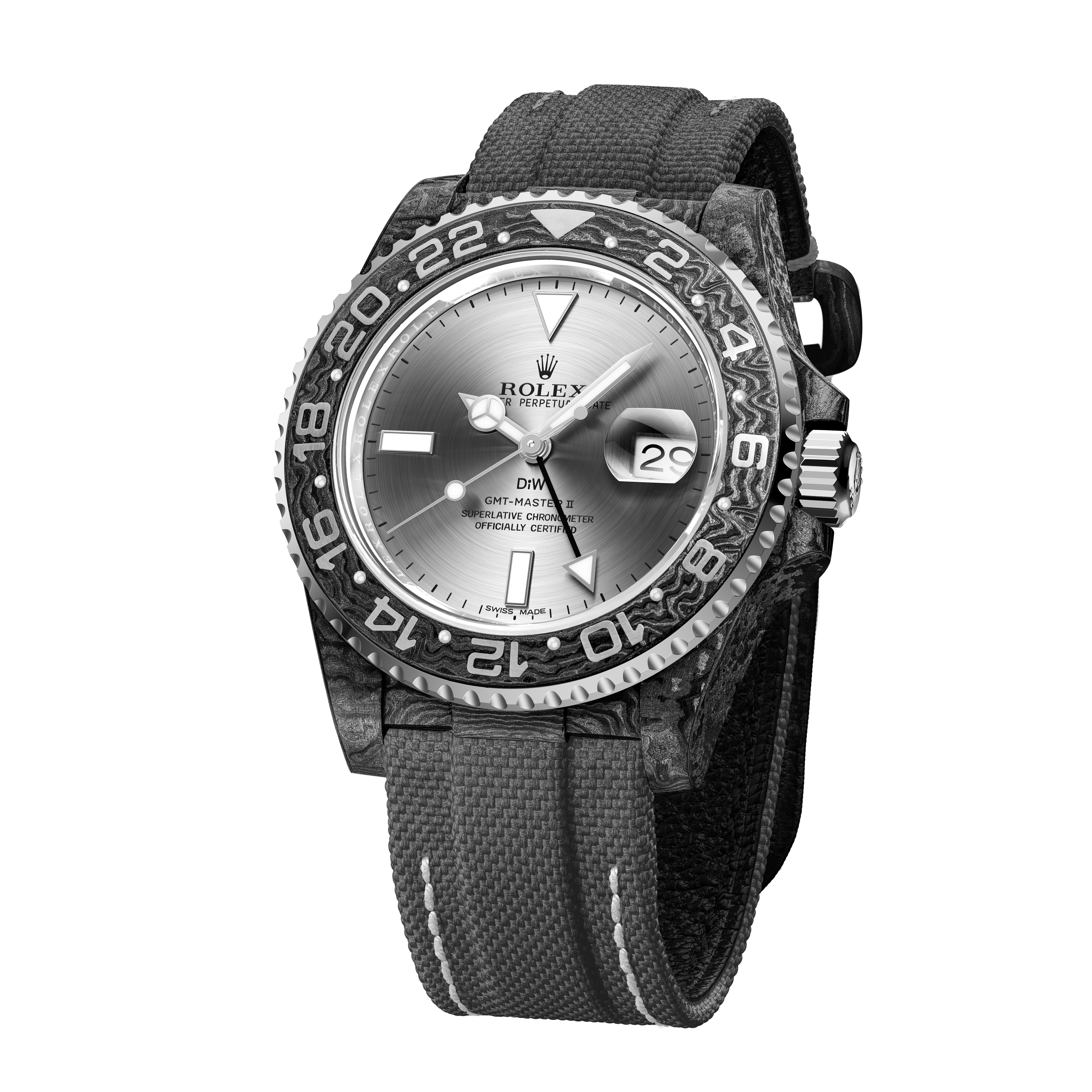 Каждая модель DiW создаётся на основе подлинного механизма и корпуса Rolex, которые проходят глубокую индивидуальную переработку. Бренд специализируется на карбоне, титане, керамике и редких декоративных решениях, выводя культовые модели Rolex на новый эстетический уровень. Читать о бренде...