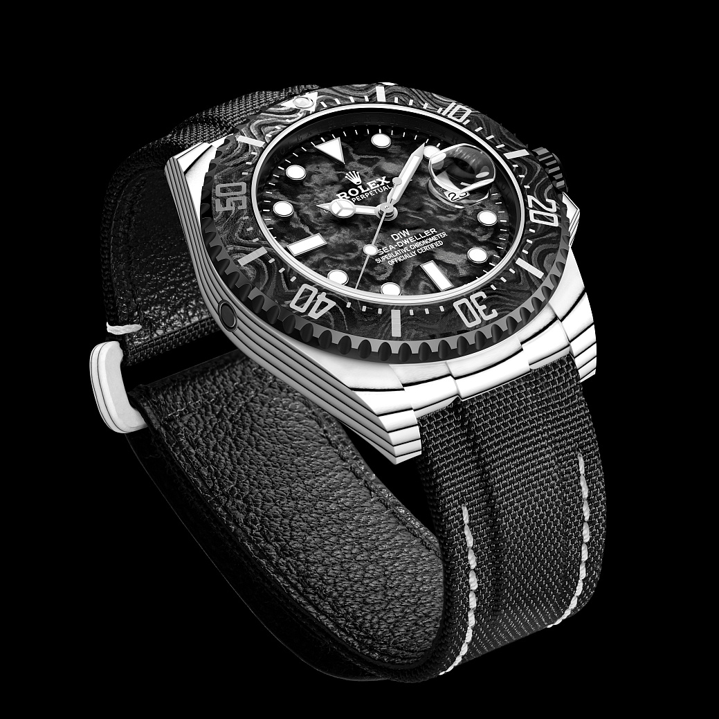 Каждая модель DiW создаётся на основе подлинного механизма и корпуса Rolex, которые проходят глубокую индивидуальную переработку. Бренд специализируется на карбоне, титане, керамике и редких декоративных решениях, выводя культовые модели Rolex на новый эстетический уровень. Читать о бренде...