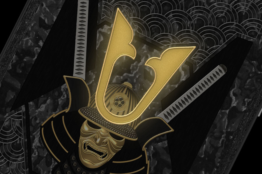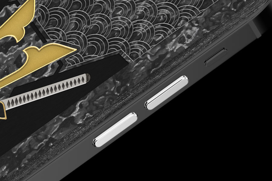 Заднаяя панель Изготовлен из нескольких высококачественных композитных материалов, включая углеродное волокно с небольшими элементами из керамики. Работа выполнена вручную из золота и нержавеющей стали.
