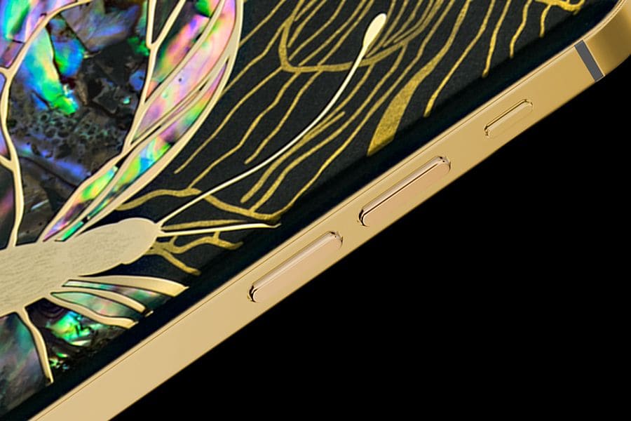 Заднаяя панель Зеленый композитный материал на основе керамики, инкрустированный металлическими элементами и двумя видами перламутра. Окантовка вокруг камеры выполнена из 18-каратного золота