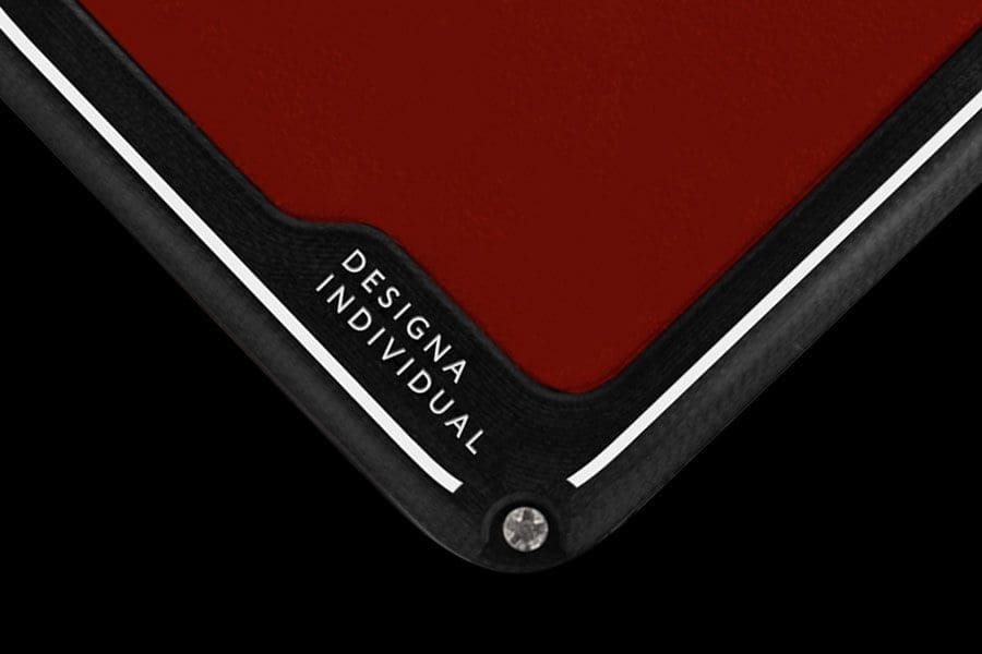 Заднаяя панель Сочетание черной кожи наппа и прочного и простого композитного материала G10. Обрамление выполнено из эмали холодного серого цвета. Окантовка вокруг камеры и болтов выполнена из белого золота 18 карат