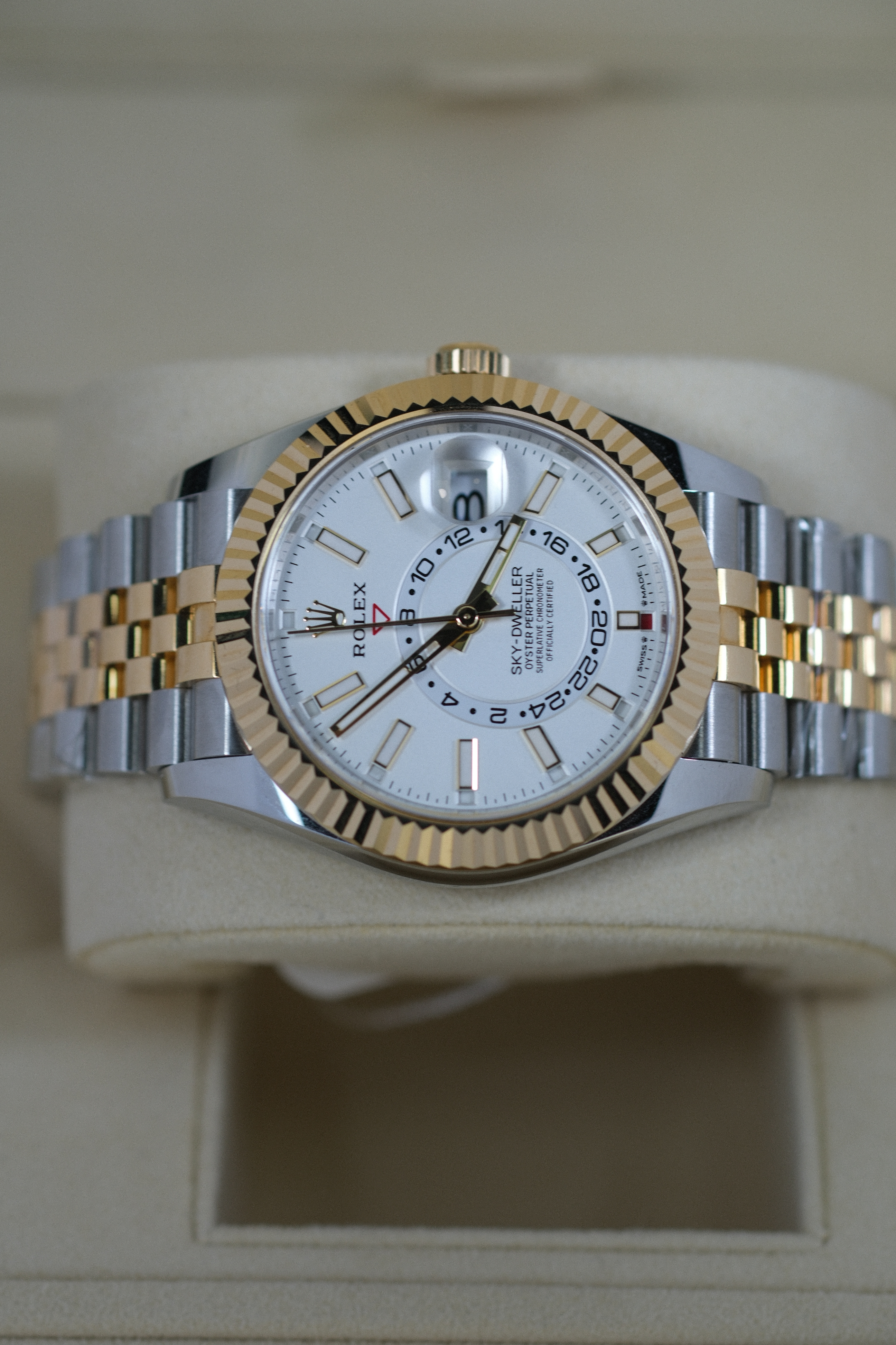 В мире часов и ювелирных изделий существует особый бренд, который ассоциируется с безупречным качеством и непревзойденным стилем. Этот бренд – Rolex, и именно его изделия представлены в нашем часовом салоне «Мануфактура». Мы предлагаем вам возможность стать обладателем одного из самых уникальных и стильных часов от этого бренда – Sky-Dweller 42mm Steel and Yellow White Dial.