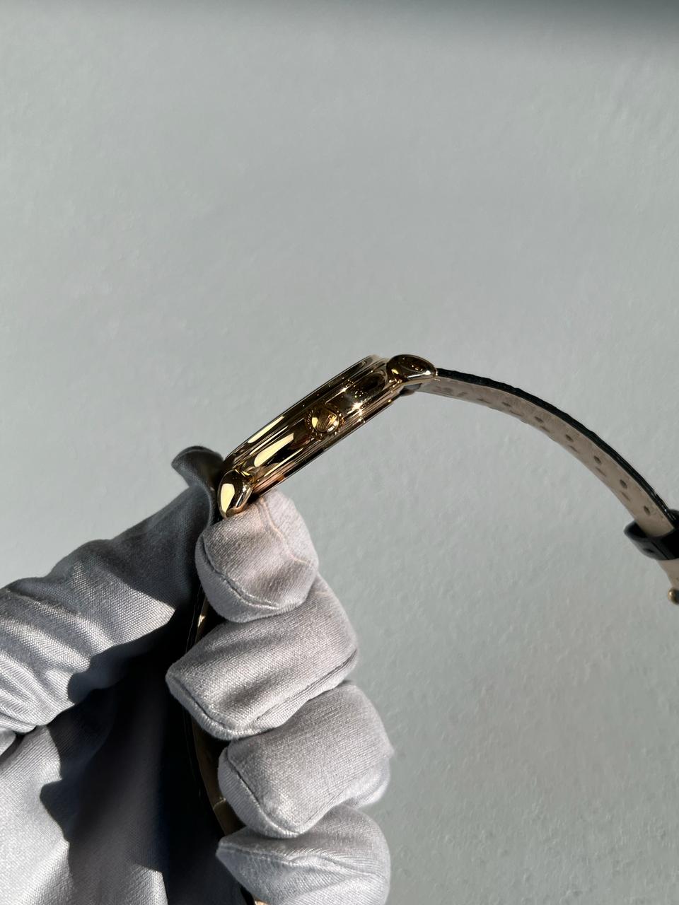 Сделанные из желтого золота, корпус этих часов поражает своей изысканностью и роскошью. Размер корпуса составляет 40 мм, что делает его идеальным для мужской руки. Ремешок из натуральной кожи добавляет изделию дополнительный шарм и элегантность.