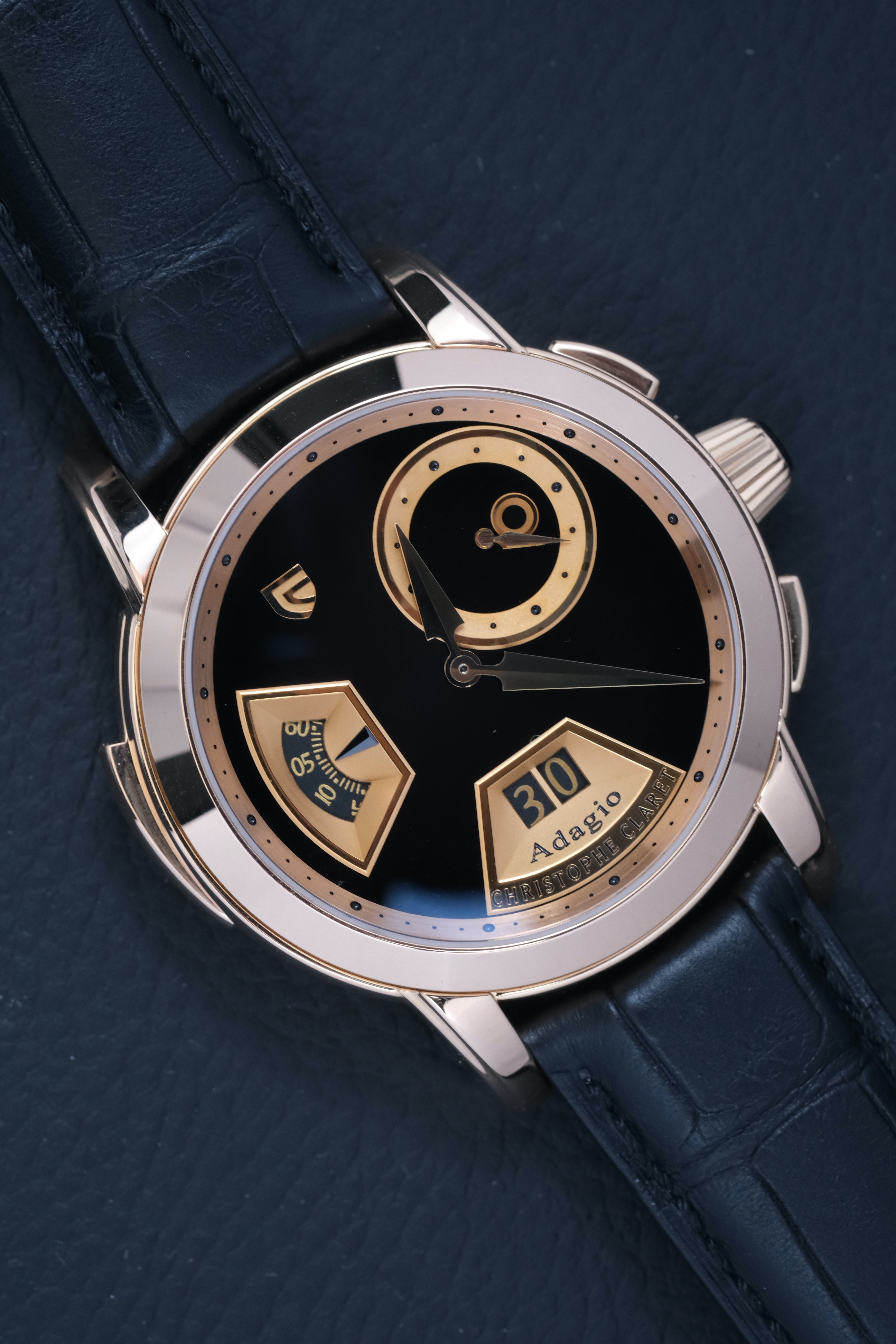 Christophe Claret Adagio — это высококлассные швейцарские часы, сочетающие сложные часовые усложнения с изысканным дизайном. Модель оснащена минутным репетиром с «катедральными» гонгами, которые издают насыщенный звук при отбивке часов, четвертей и минут по запросу. Кроме того, часы имеют крупную дату на отметке «6 часов» и указатель второго часового пояса с индикацией дня/ночи в субциферблате на «2 часах». GPHG Механизм с ручным заводом калибра SLB88 состоит из 455 деталей и обеспечивает запас хода около 48 часов. Корпус диаметром 44 мм доступен в вариантах из розового золота, белого золота или платины, с водостойкостью до 30 метров. Циферблат может быть выполнен из черного оникса или «ястребиного глаза», подчеркивая элегантность модели. GPHG Adagio выпускается ограниченными сериями, каждая из которых насчитывает всего 8 экземпляров для каждого сочетания корпуса и циферблата, что делает эти часы поистине коллекционным предметом.