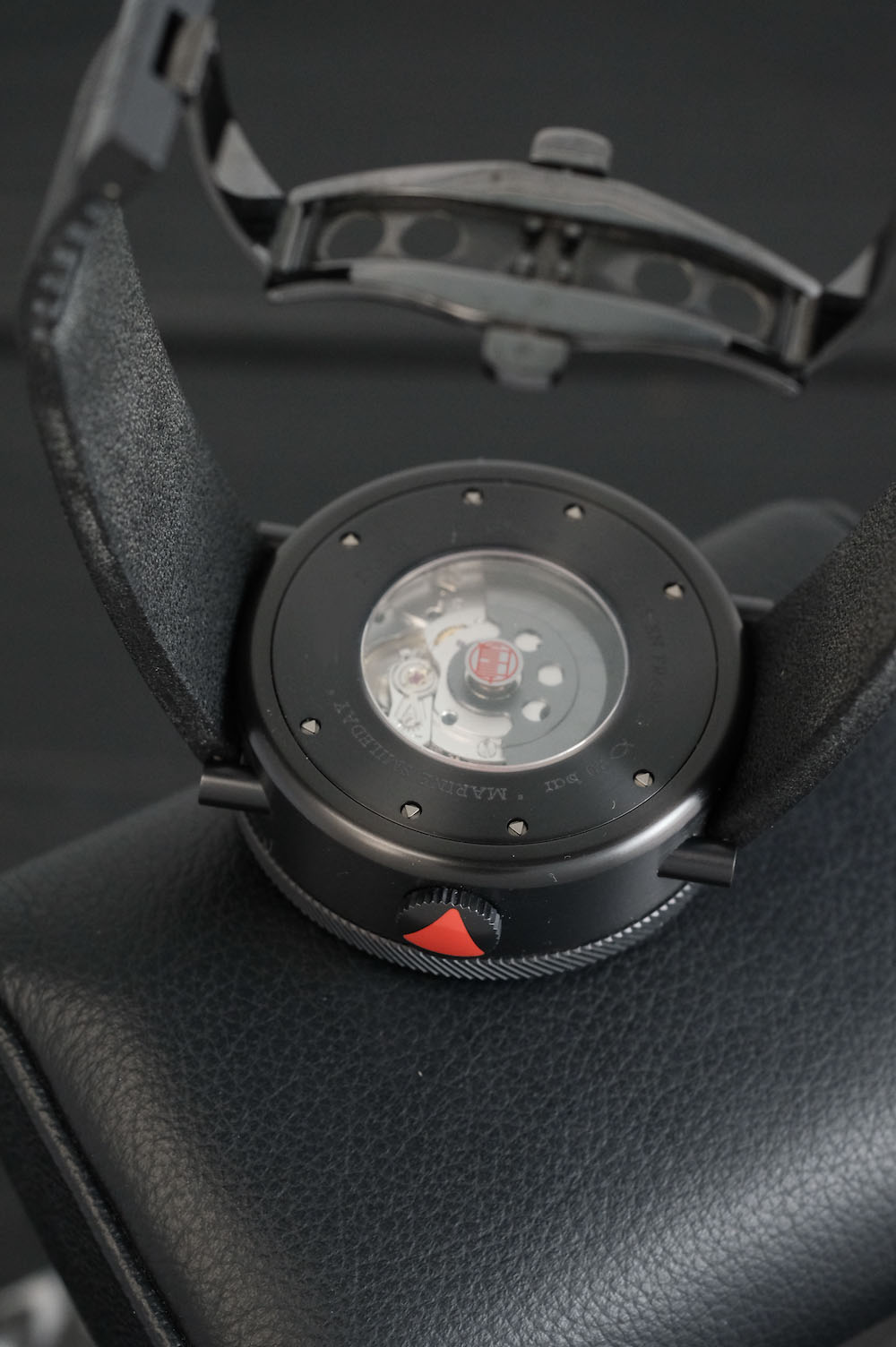 Ремешок из каучука обеспечивает комфортное ношение и идеально сочетается с корпусом, создавая гармоничный образ. Сапфировое стекло не только защищает механизм от повреждений, но и добавляет часам дополнительный блеск и изысканность.