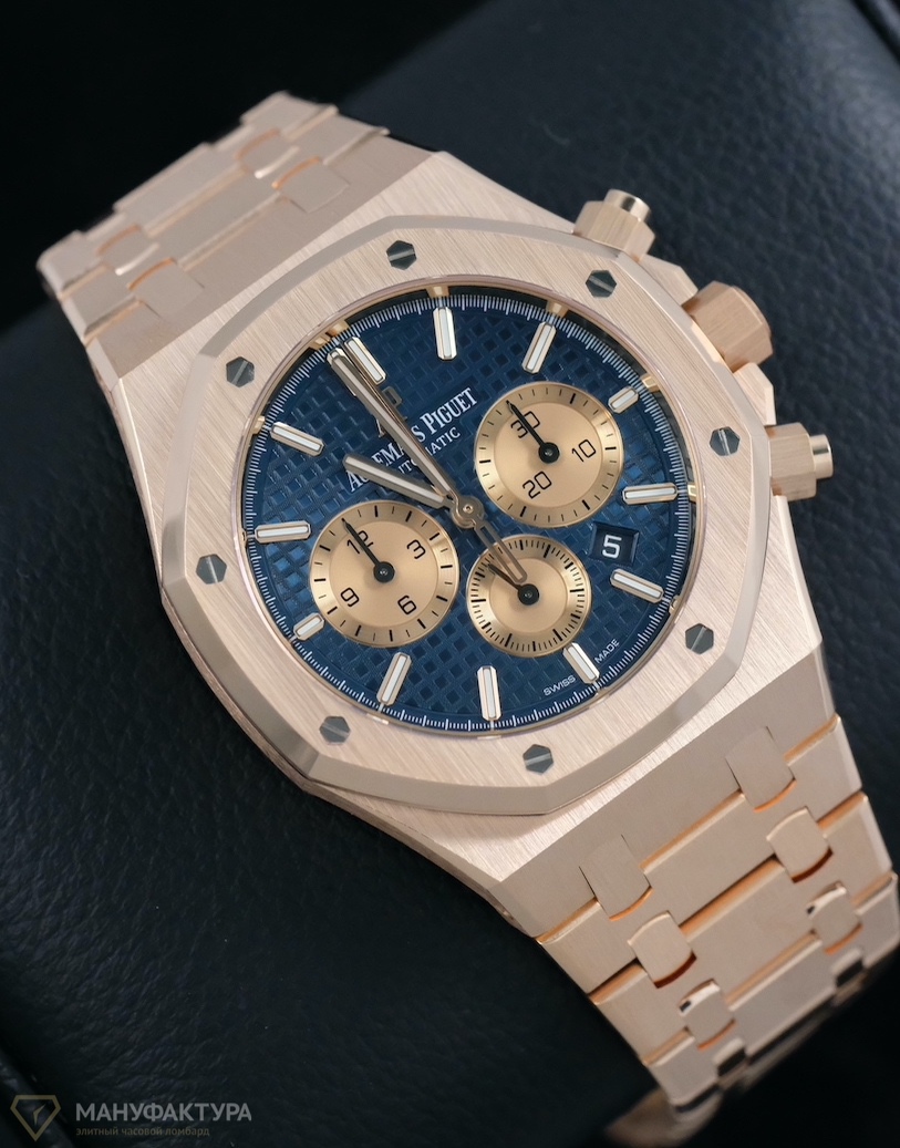 В мире часов и ювелирных изделий есть бренды, которые не нуждаются в представлении. Одним из таких имен является Audemars Piguet, и именно его шедевр, Royal Oak Chronograph 41 mm, мы предлагаем вашему вниманию в нашем часовом салоне «Мануфактура». Этот часовой браслет – не просто аксессуар, а произведение искусства, которое гарантирует вам не только точность времени, но и статус владельца эксклюзивного швейцарского часового искусства.