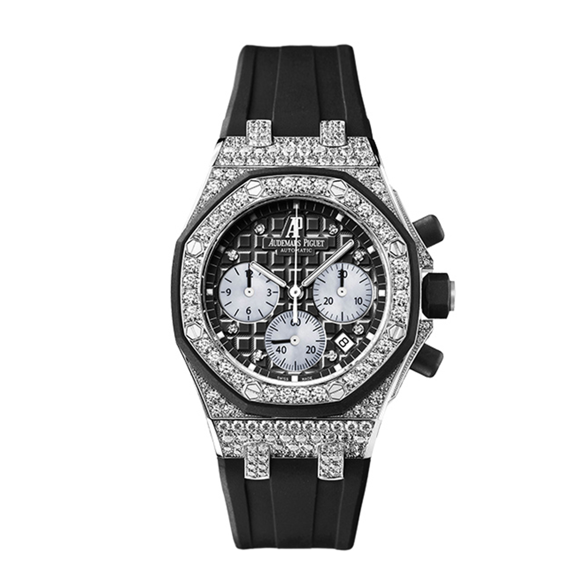 Часы Royal Oak Offshore, имеющие размер 37 мм, изготовлены из белого золота, что придает им особую изысканность и роскошь. Ремешок из каучука обеспечивает комфортное ношение и идеально сочетается с корпусом, создавая гармоничный образ. Сапфировое стекло не только защищает механизм от повреждений, но и обеспечивает отличную видимость циферблата, даже при ярком освещении.