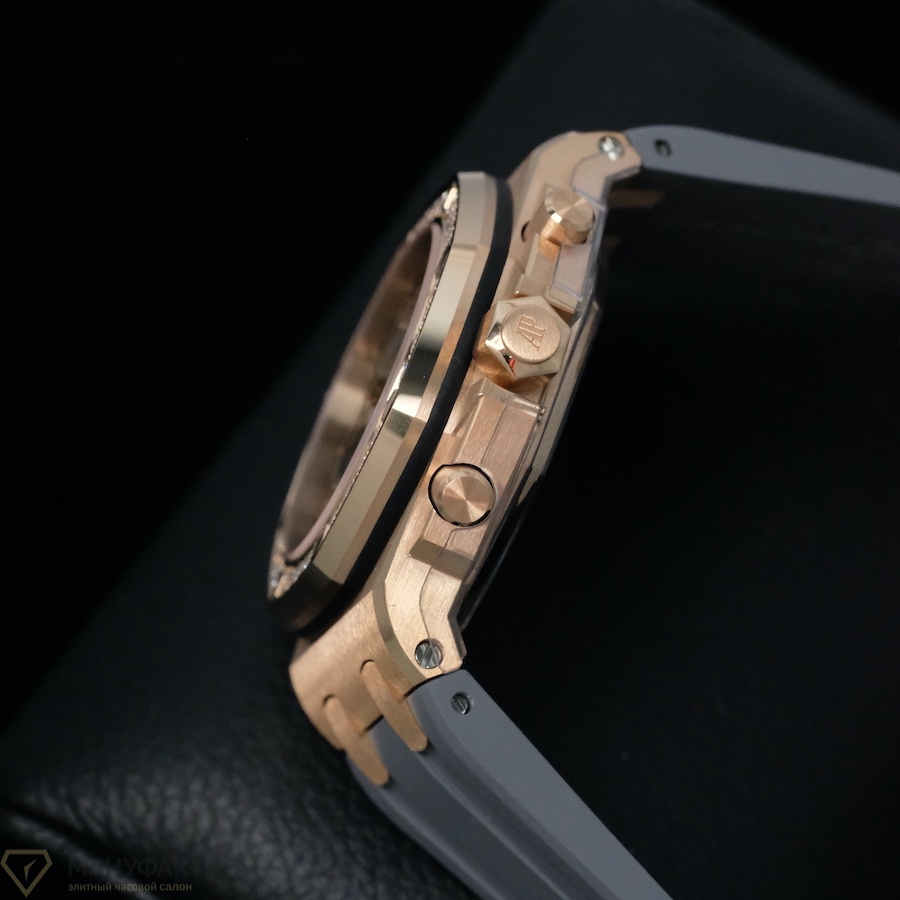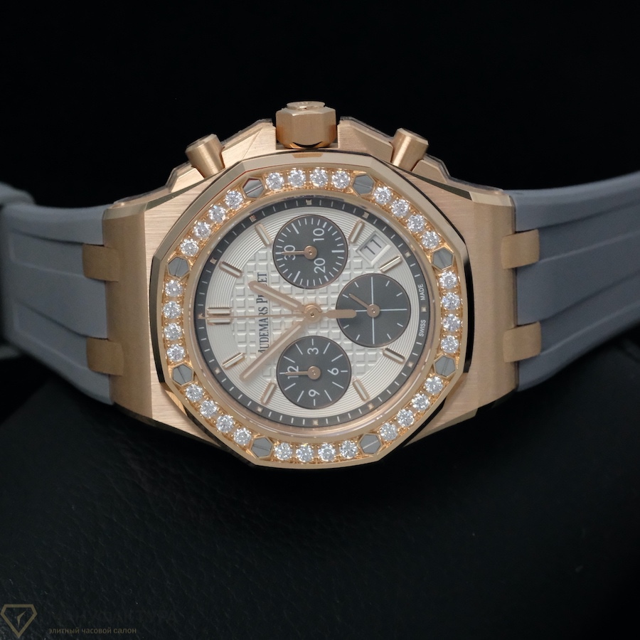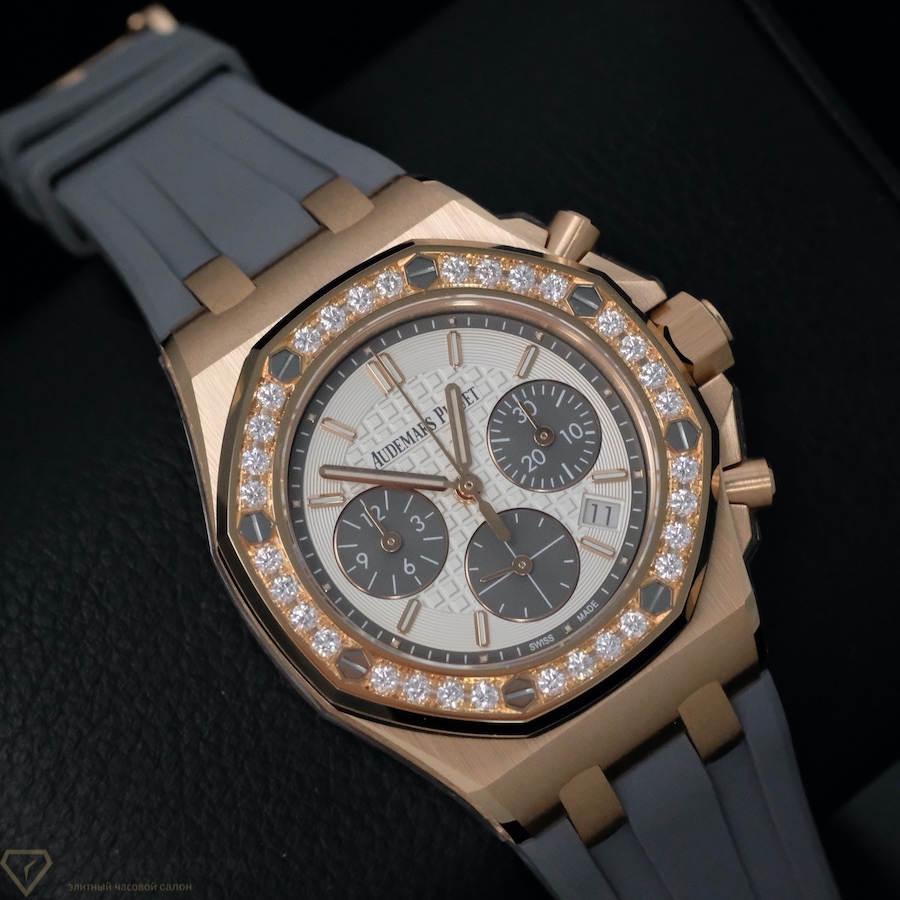 Часы Royal Oak Offshore Chronograph 37 mm – это не просто аксессуар, это произведение искусства, созданное лучшими мастерами Audemars Piguet. Корпус из розового золота, украшенный бриллиантами, придает часам особую изящность и элегантность. Ремешок из каучука обеспечивает комфортное ношение и подчеркивает спортивный стиль модели.