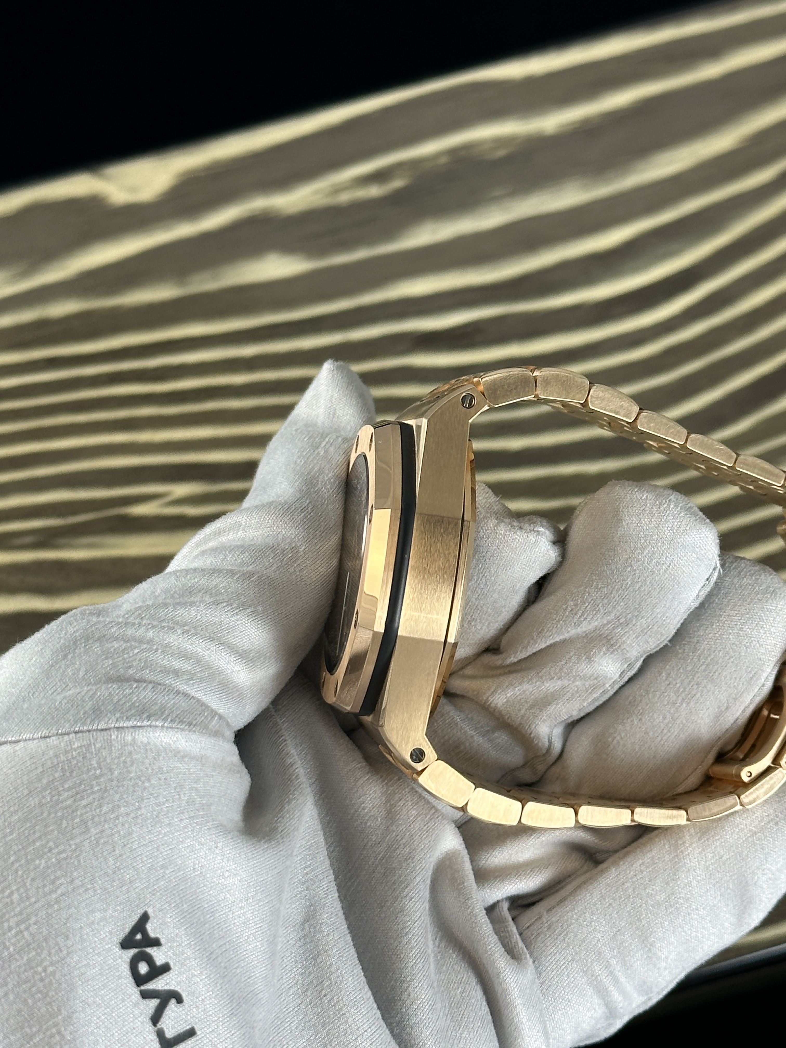 Эти часы представляют собой настоящий шедевр, сочетающий в себе функциональность и элегантность. Корпус выполнен из розового золота, что придает им особую изысканность и роскошь. Браслет, изготовленный из того же материала, обеспечивает комфортное ношение и подчеркивает статус владельца.