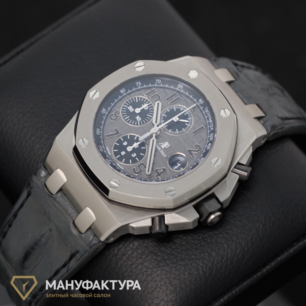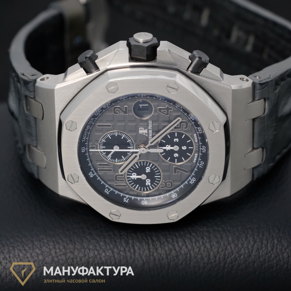 Какой часовой бренд ассоциируется у вас с высшим уровнем мастерства и непревзойденным стилем? Безусловно, это Audemars Piguet, и именно его шедевр, Royal Oak Offshore Chronograph Grey, мы предлагаем вашему вниманию в нашем часовом салоне «Мануфактура».