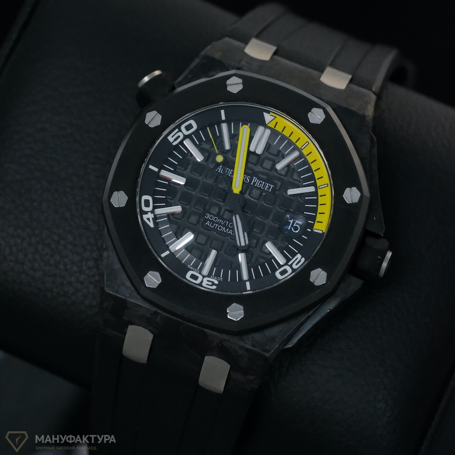 Каждые часы Royal Oak Offshore Diver Carbon проходят тщательную предпродажную подготовку в нашем салоне, что гарантирует их идеальное состояние. Мы предоставляем полный комплект документов, включая гарантию на 1 год, что подтверждает качество и аутентичность товара. Кроме того, вы получите оригинальную коробку от производителя, которая станет отличным дополнением к вашему новому приобретению.