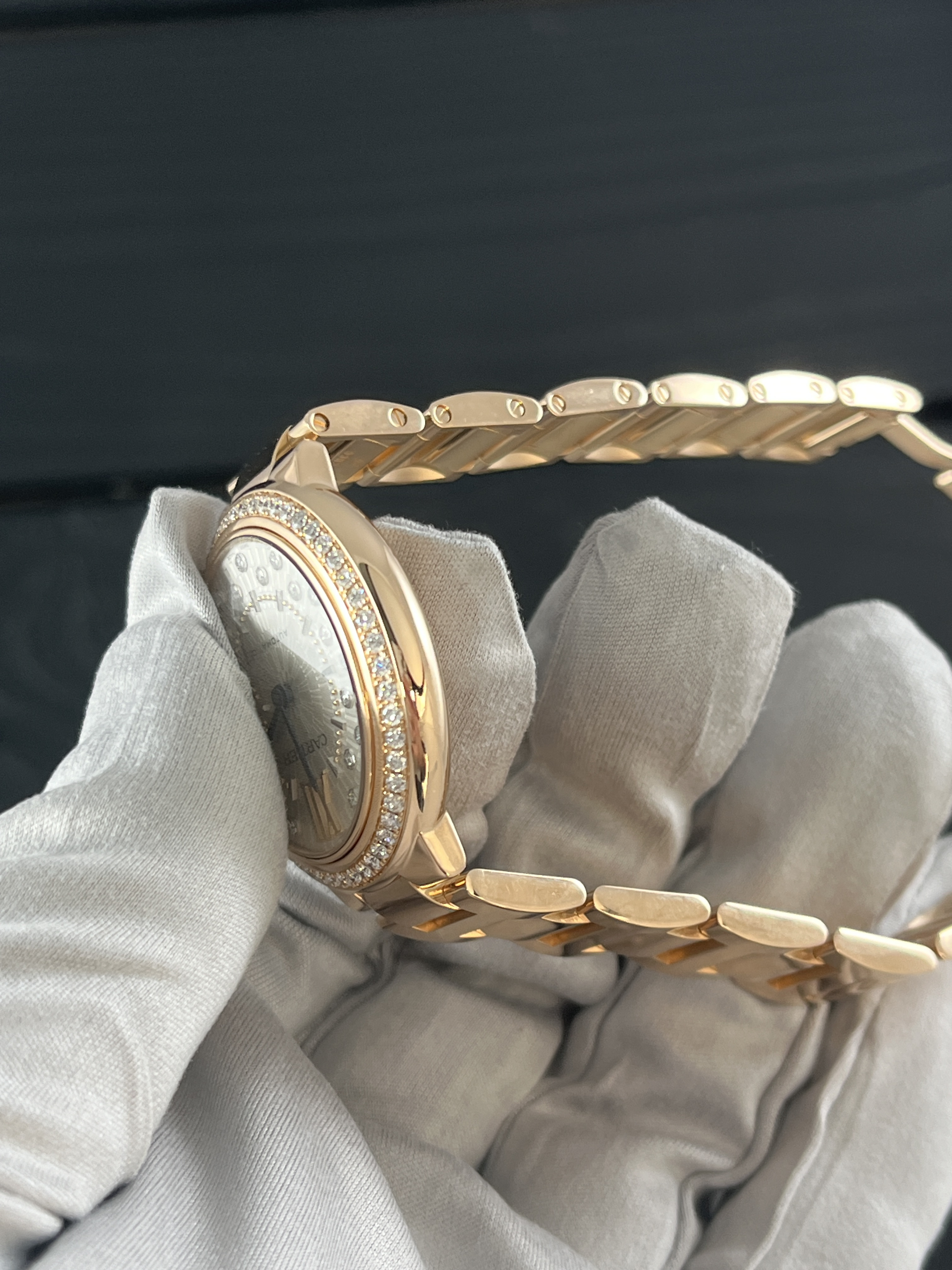 Созданные из розового золота и украшенные бриллиантами, эти часы не только отражают ваш стиль, но и говорят о вашем отношении к качеству и элегантности. Автоматический механизм обеспечивает точность и надежность, а сапфировое стекло добавляет дополнительный слой защиты и прозрачности.
