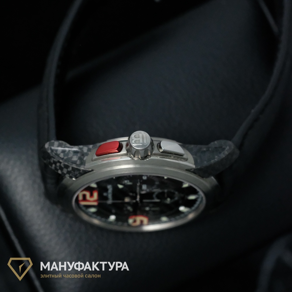 Сделанные из карбона и титана, корпус этих часов обладает не только прочностью и легкостью, но и уникальным дизайном, который привлечет внимание любителей высокого стиля. Ремешок из натуральной кожи добавляет изделию дополнительный шарм и комфорт в носке.