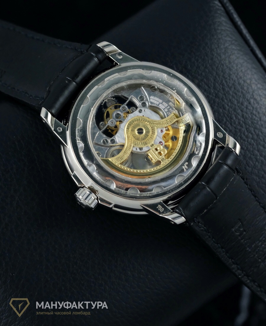 Созданные из белого золота, корпус этих часов имеет размер 38 мм, что делает их идеальными для мужчины, ценящего утонченность и стиль. Кожаный ремешок добавляет изделию дополнительный шарм и делает его еще более привлекательным.