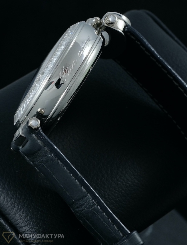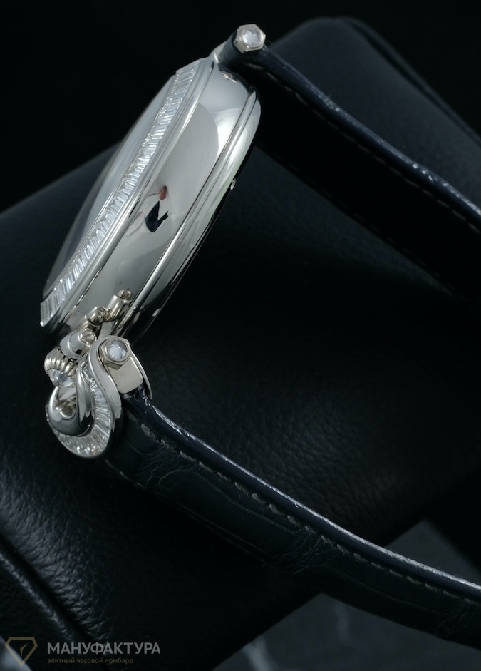 Эти часы представляют собой уникальное произведение искусства, выполненное из платины и украшенное бриллиантами. Их корпус имеет размер 42 мм, что делает их идеальными для мужской руки. Ремешок из натуральной кожи добавляет изделию дополнительный шарм и элегантность.
