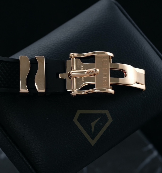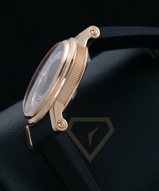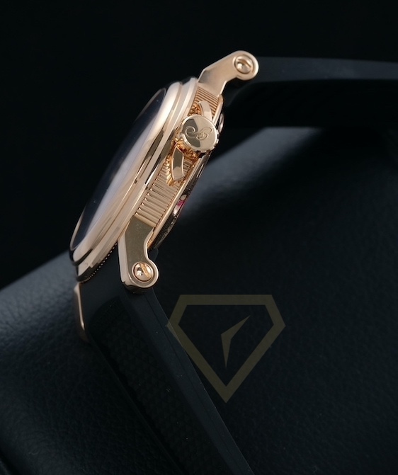 Корпус из розового золота придает часам особую изысканность и роскошь, а каучуковый ремешок обеспечивает комфорт и удобство в носке. Сапфировое стекло не только защищает механизм от повреждений, но и добавляет часам дополнительный блеск и глубину.
